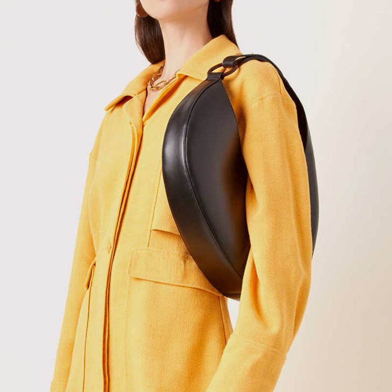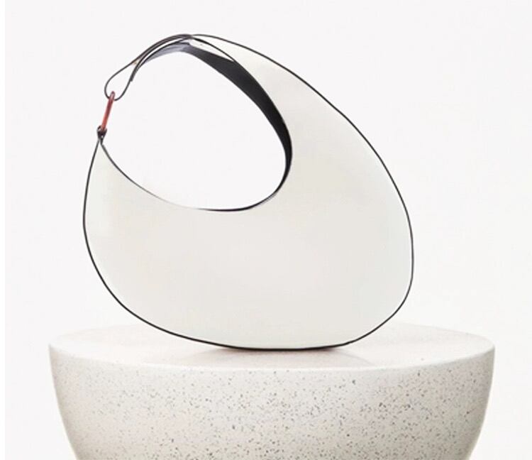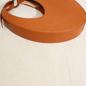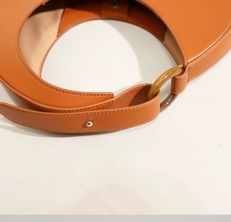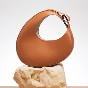 三日月型のシルエットが目を惹く、レザーショルダーバッグです。シンプルながらも洗練されたデザインで、普段使いからちょっとしたお出かけまで幅広いシーンで活躍します。上品な雰囲気を醸し出し、大人の女性の魅力を引き立てます。