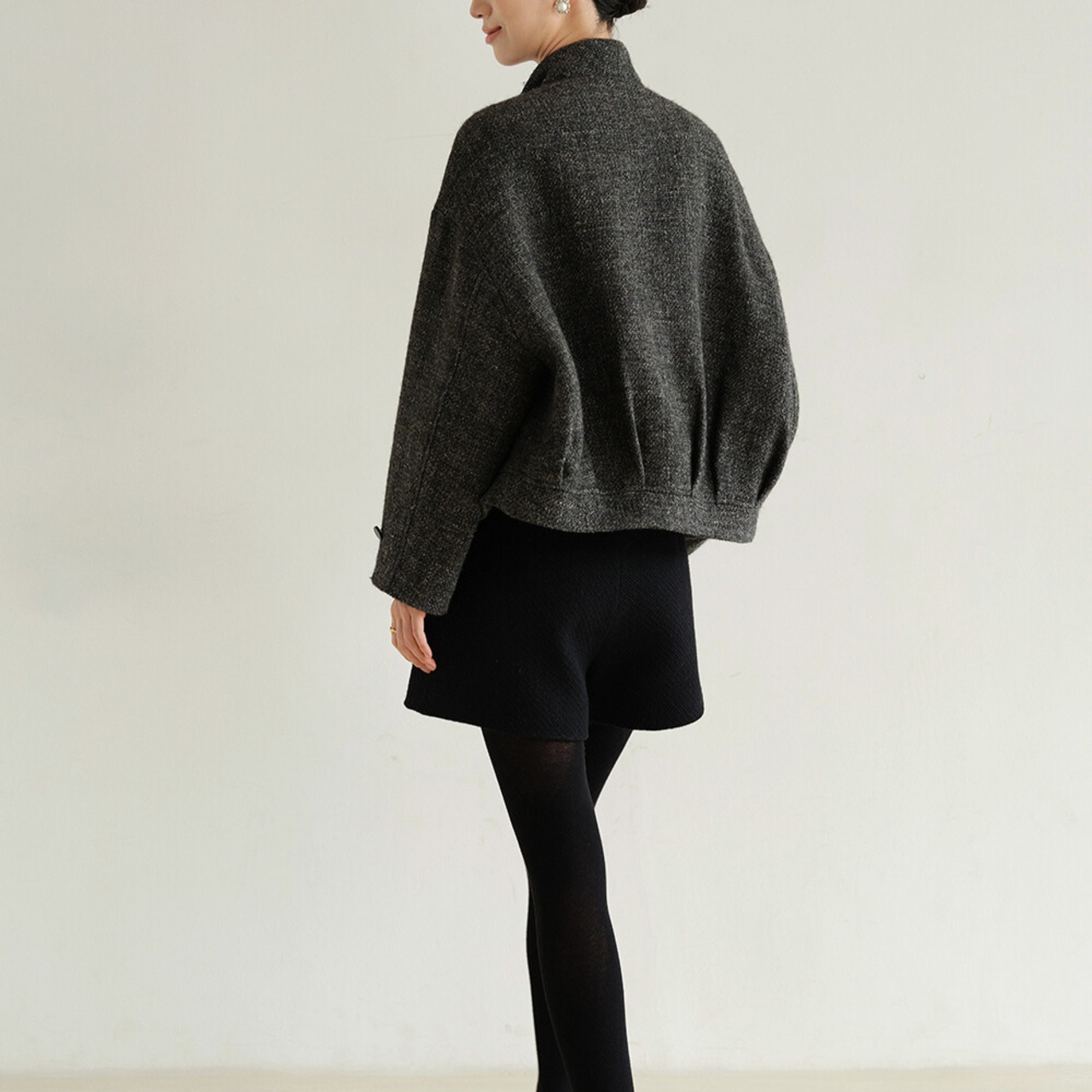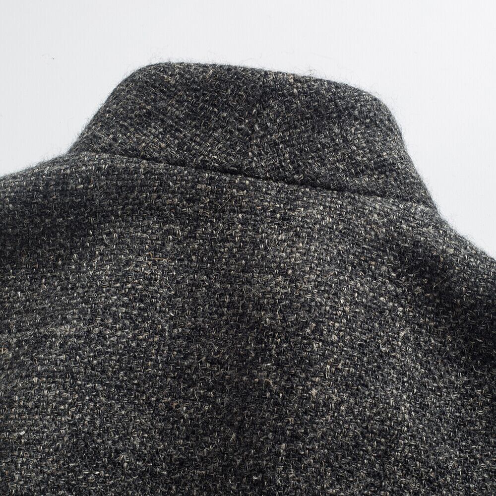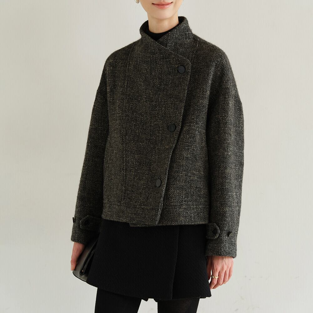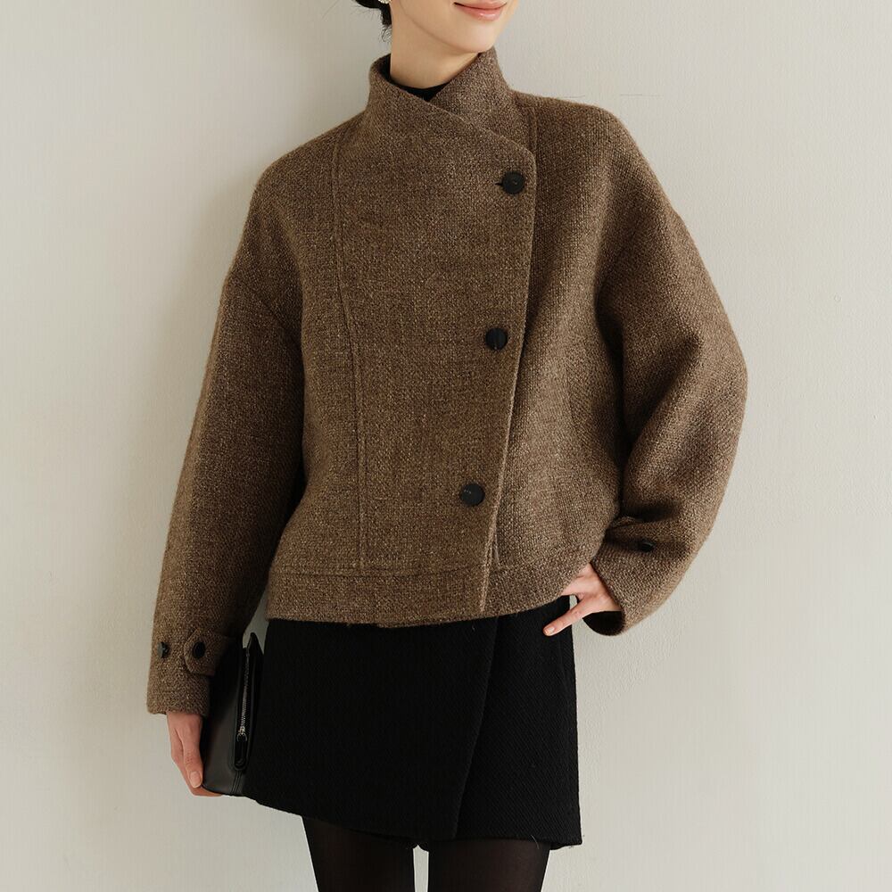 オープンカラーとショート丈が洗練された印象を与えるジャケットです。