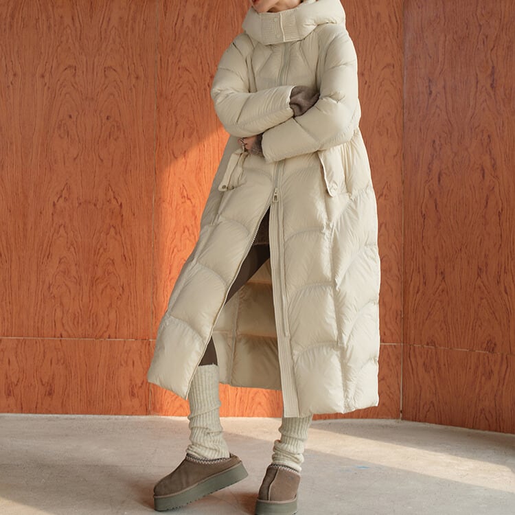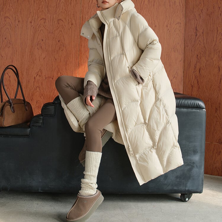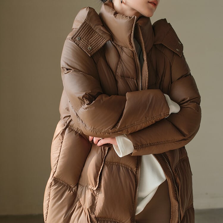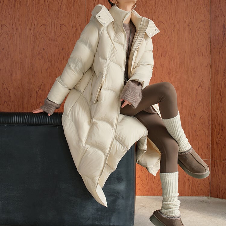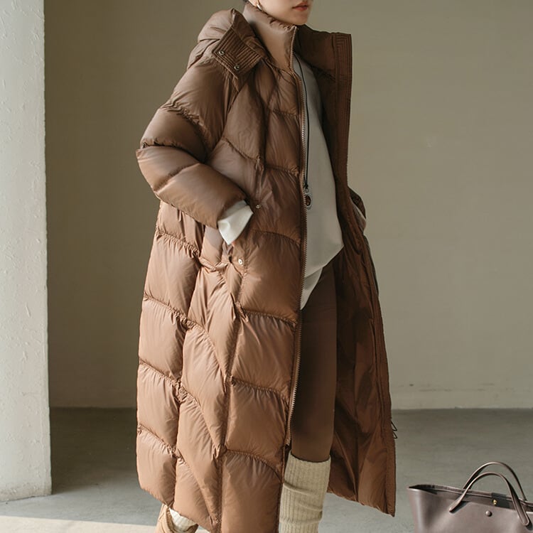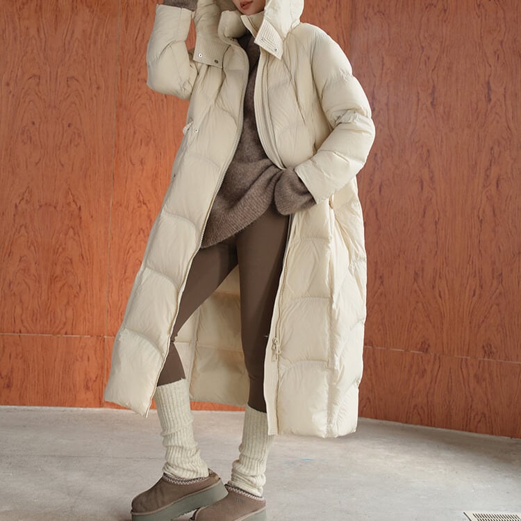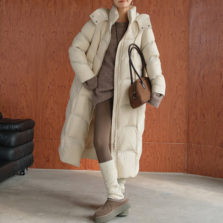 防寒とお洒落を両立するロングダウンコート。