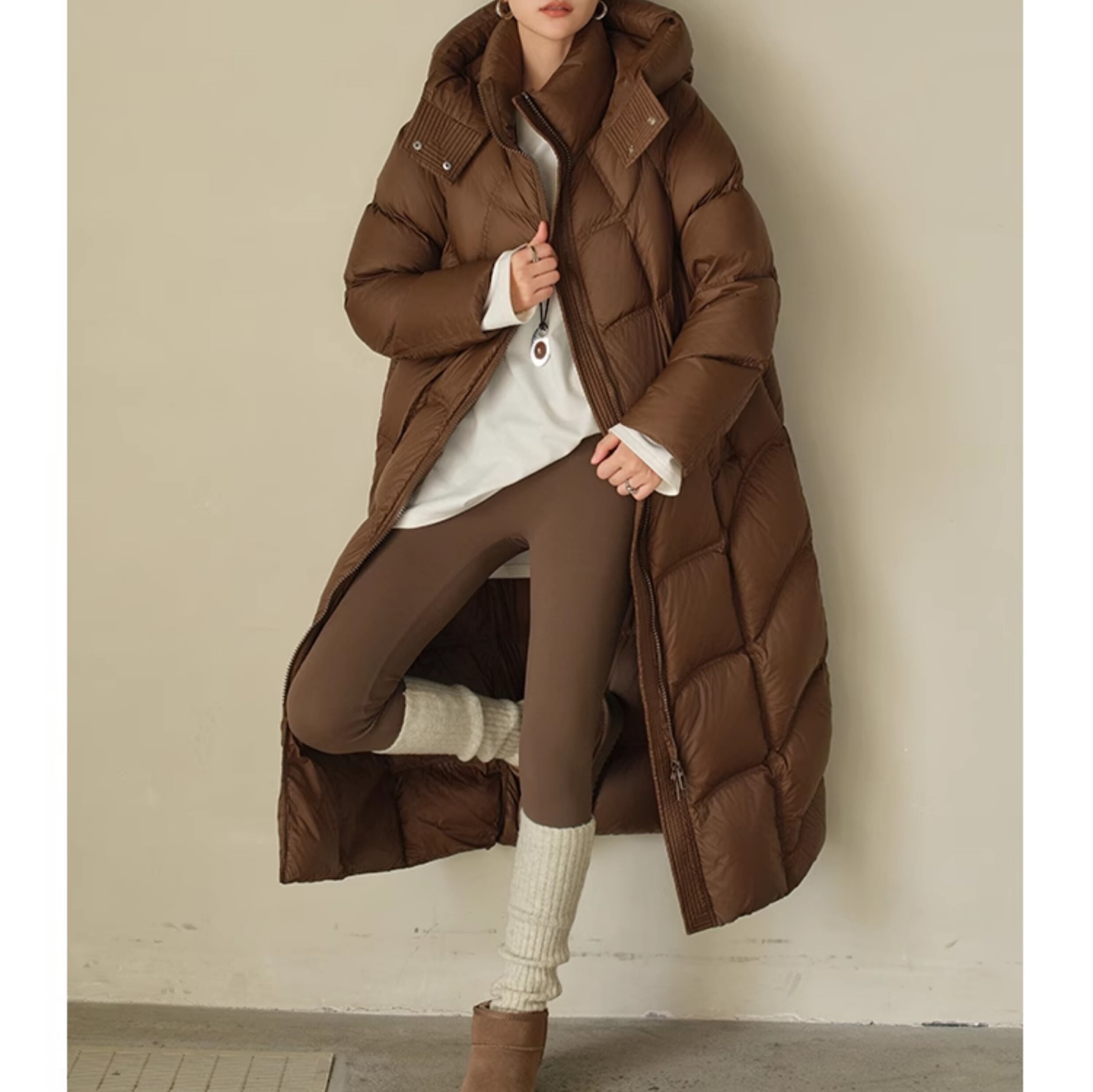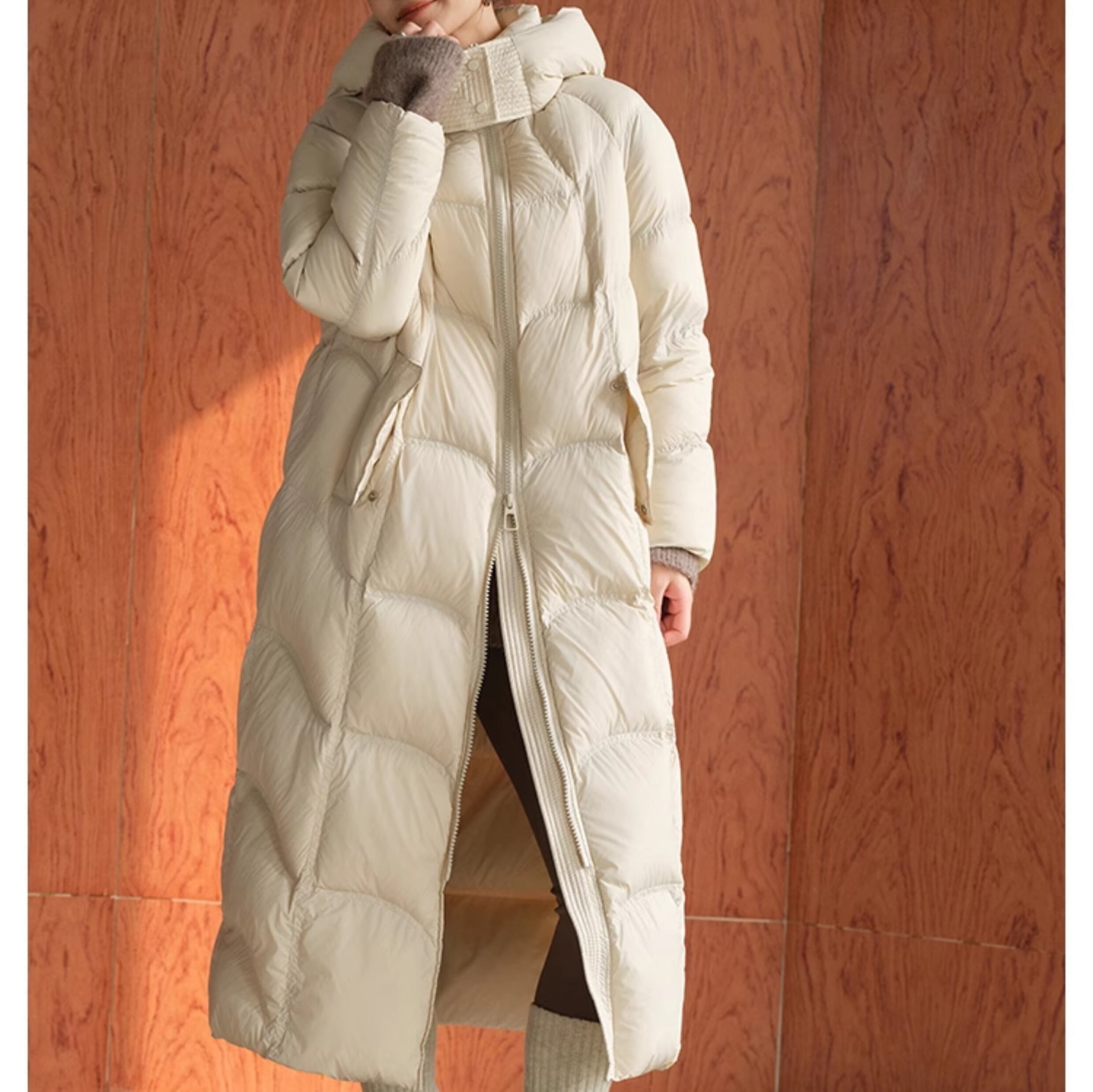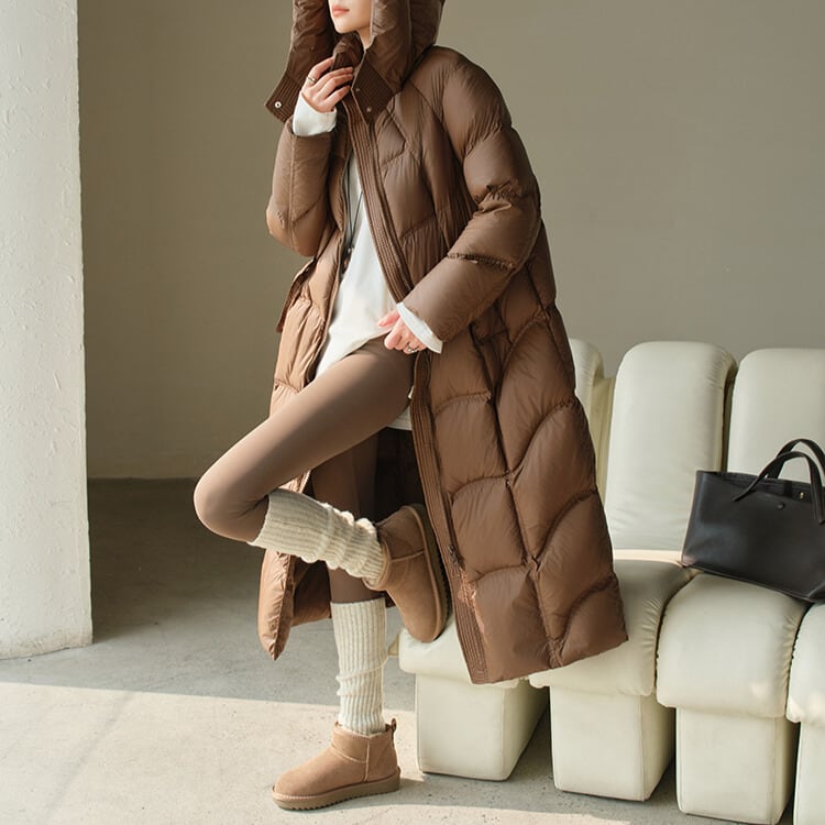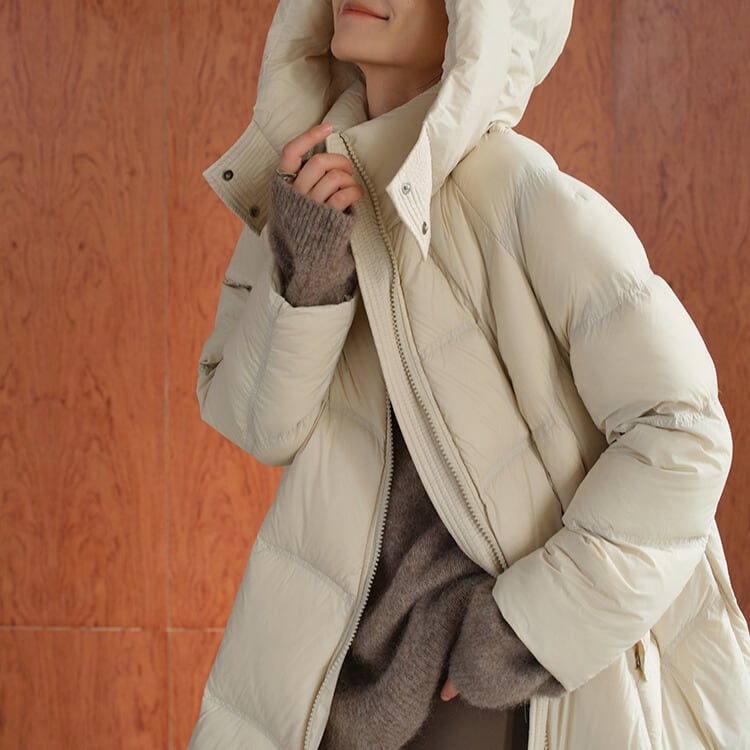 防寒とお洒落を両立するロングダウンコート。