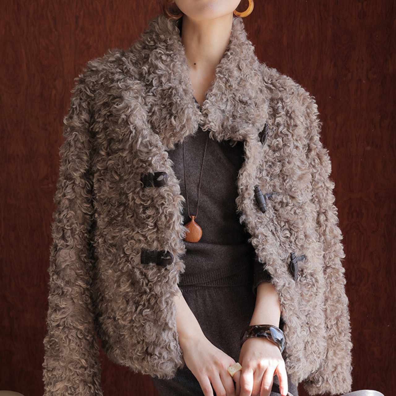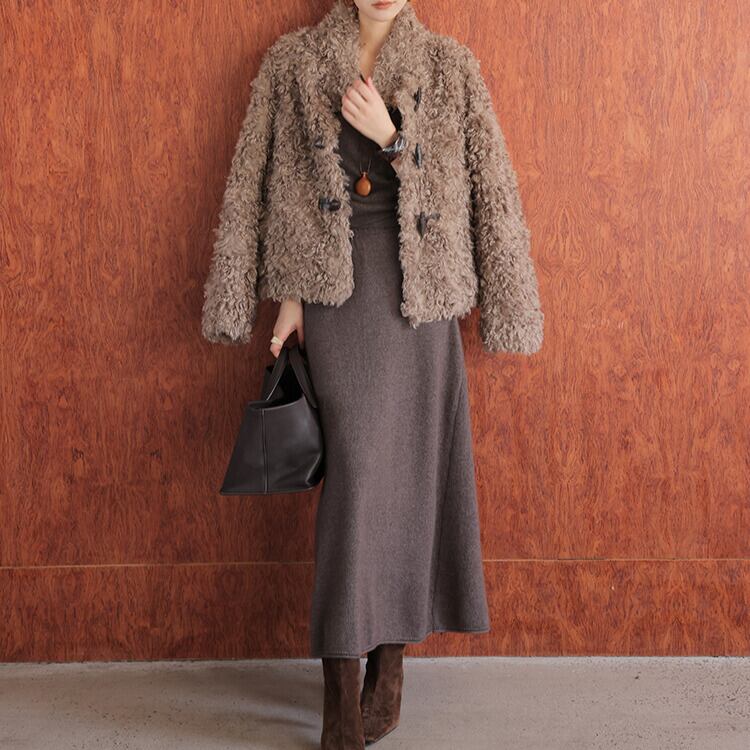 トレンド感のあるボアジャケットは、ワードローブに一枚あると重宝します。