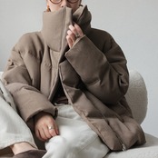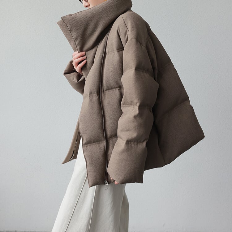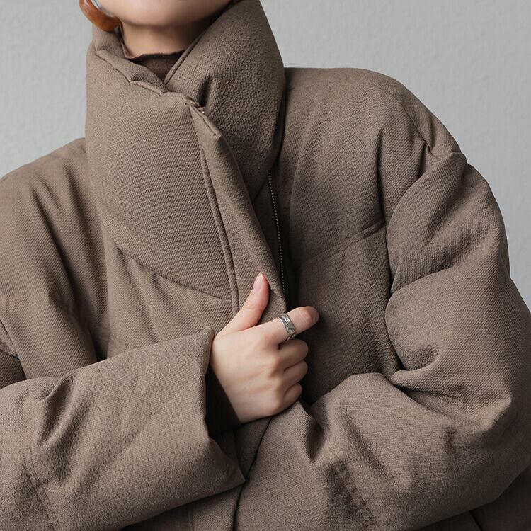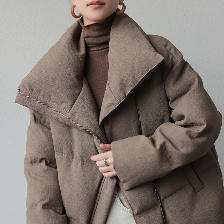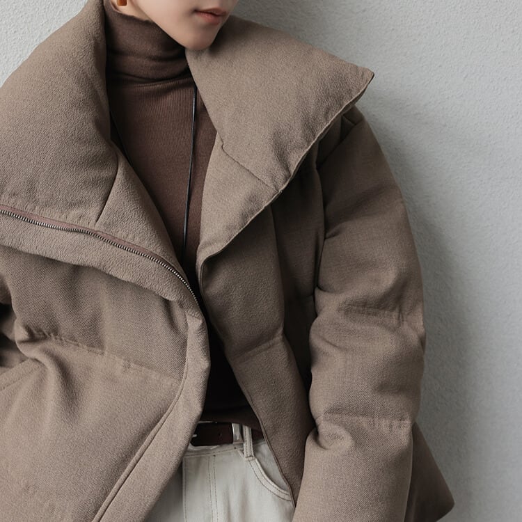 スタイリッシュなスタンドカラーデザインが魅力のダウンジャケット。