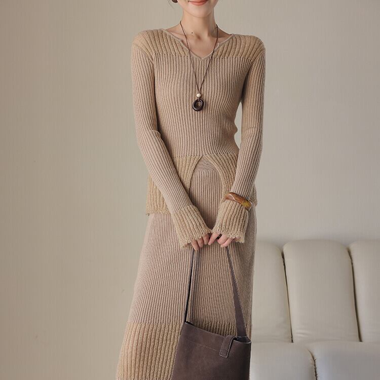 ※『リブ編み 切り替えニットスカート H10807』とセットアップとして着用いただけます。