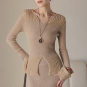 リブ編み ロングスリーブ スリットニット H11030