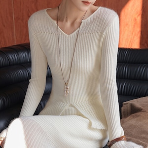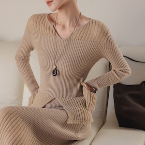 ※『リブ編み ロングスリーブ スリットニット H11030』とセットアップとして着用いただけます。