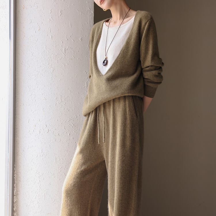※『Vネック ロングスリーブ ニット H11032』とセットアップとして着用いただけます。