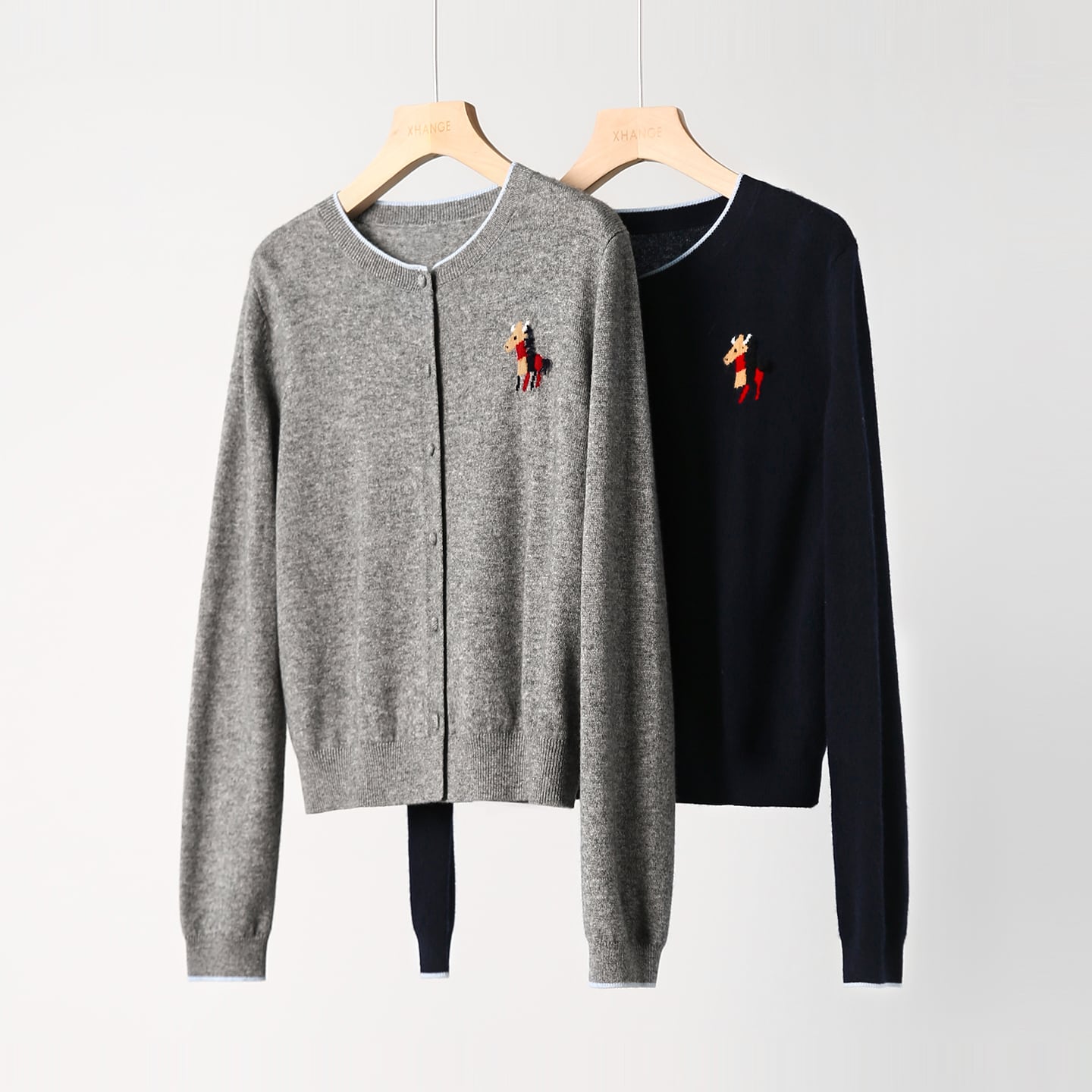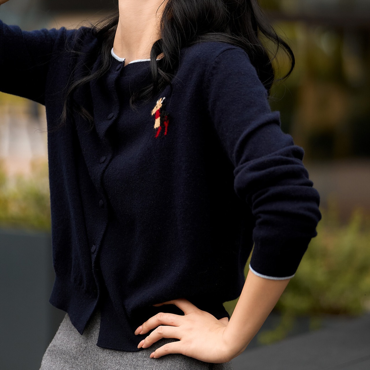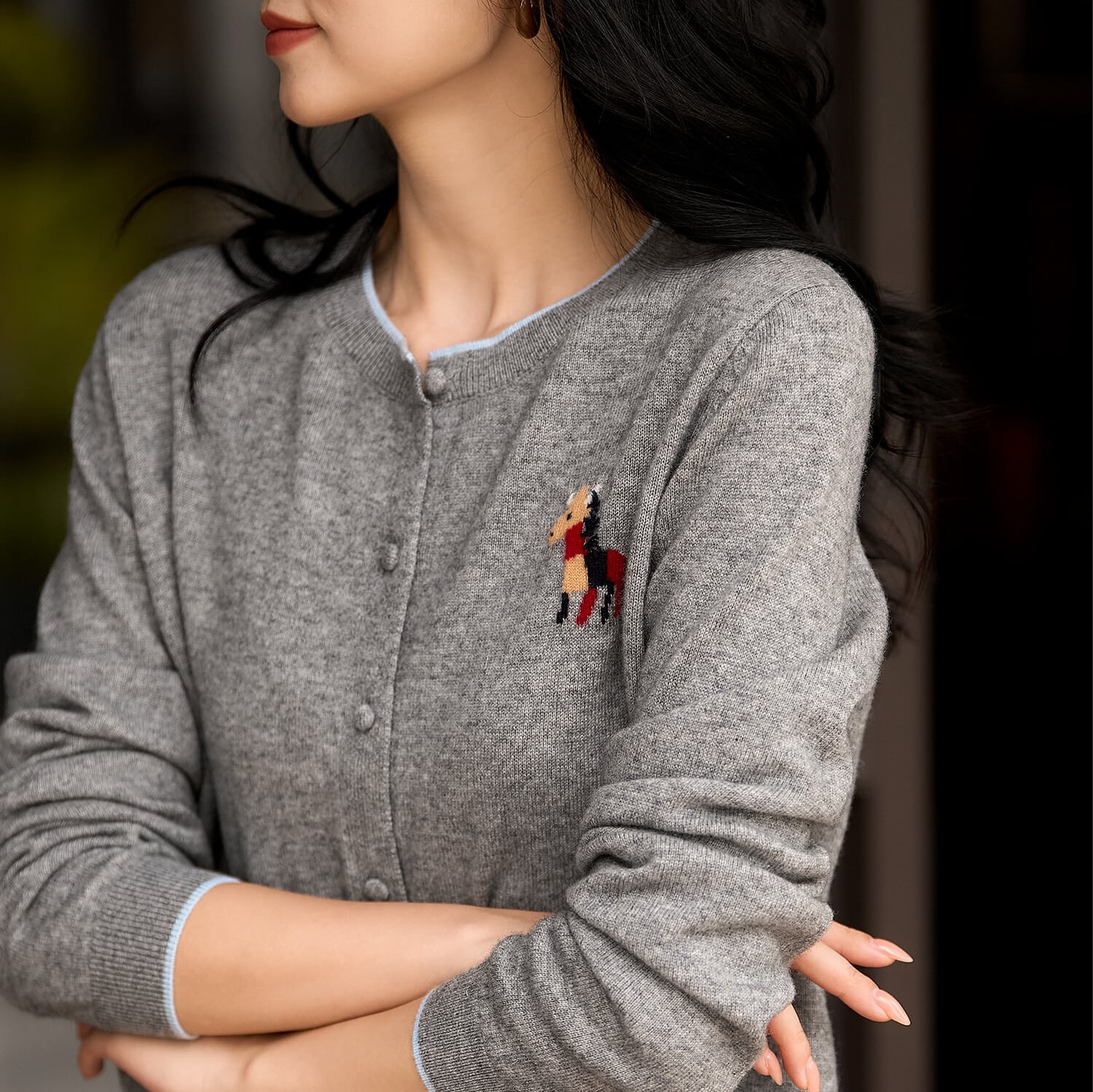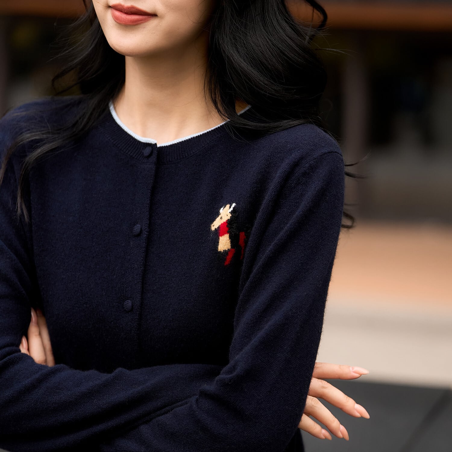 シンプルなクルーネックのデザインで、どんな装いにも合わせやすいカーディガンです。