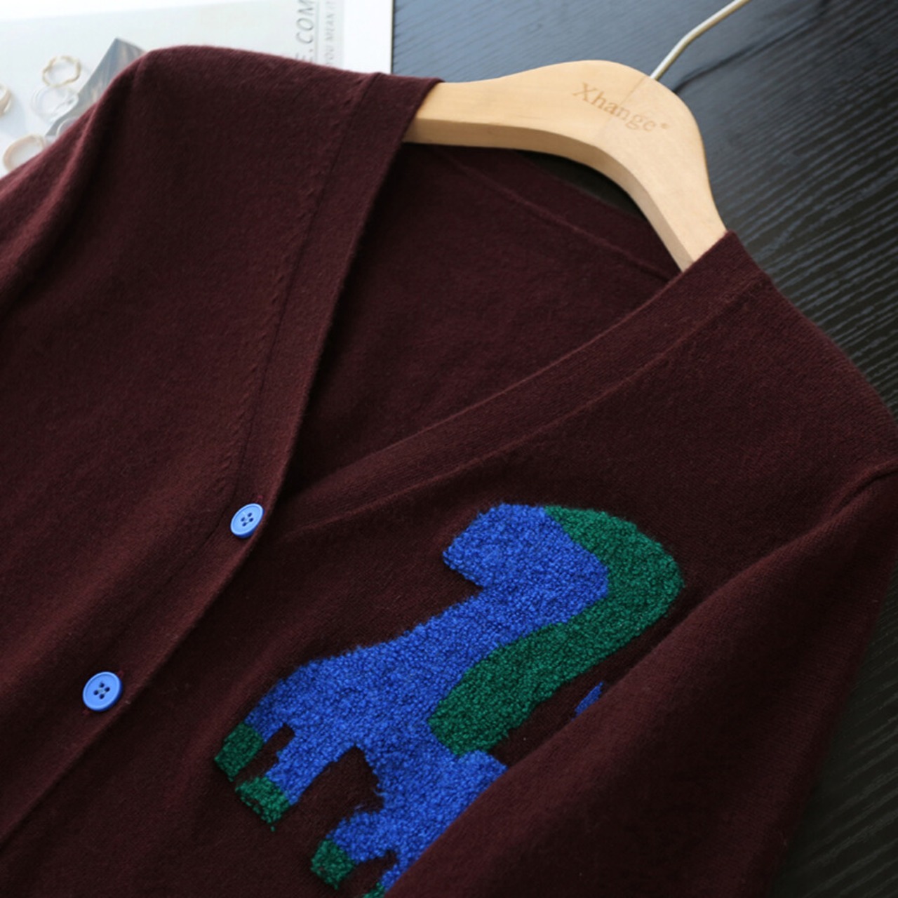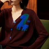 アニマル柄 Vネック ニットカーディガン H11034