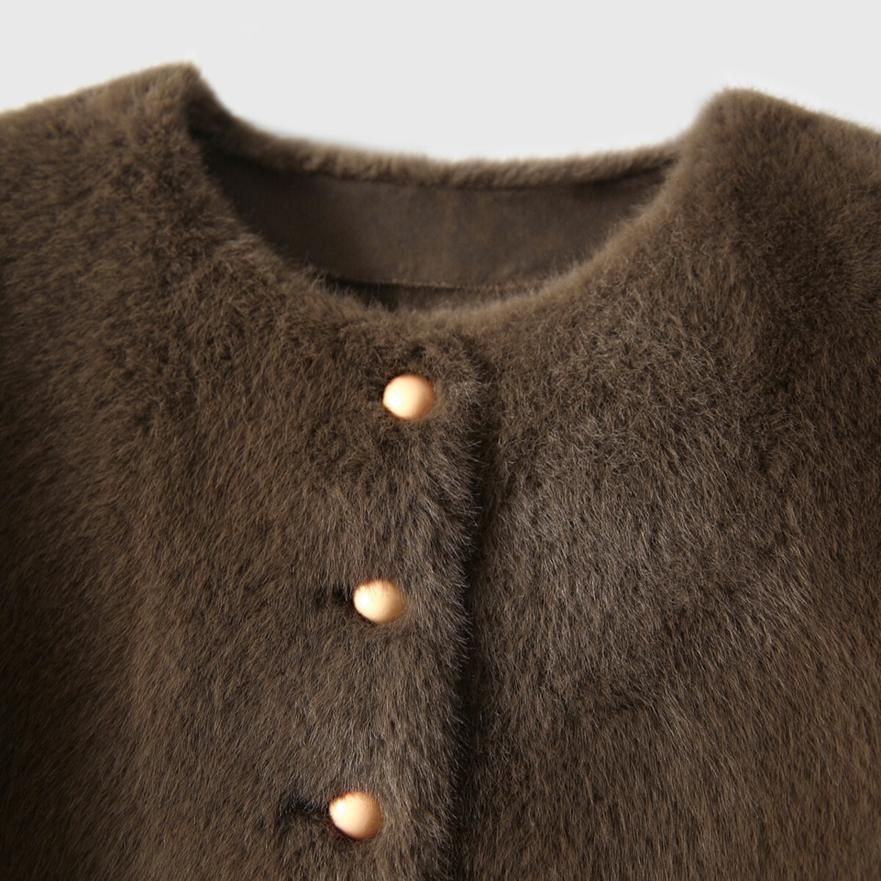 ノーカラーなので、タートルネックニットやマフラーとの相性も抜群です。