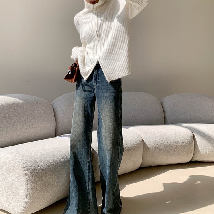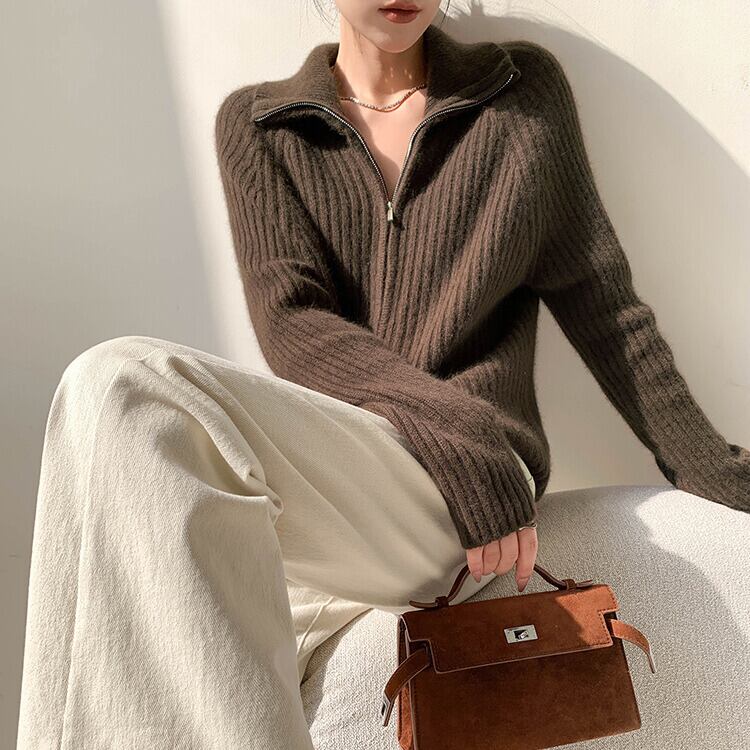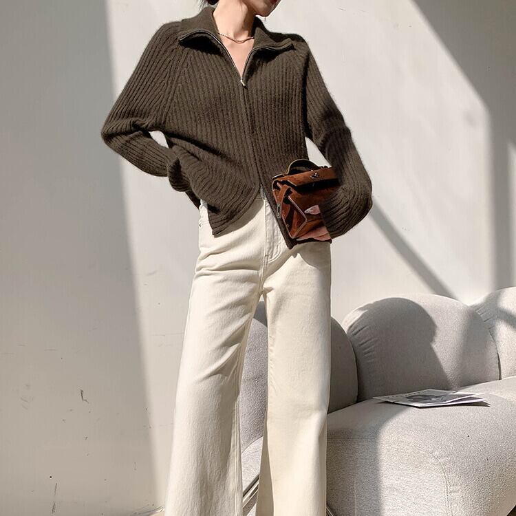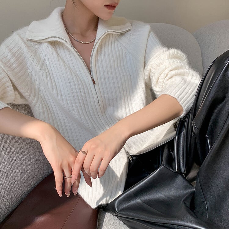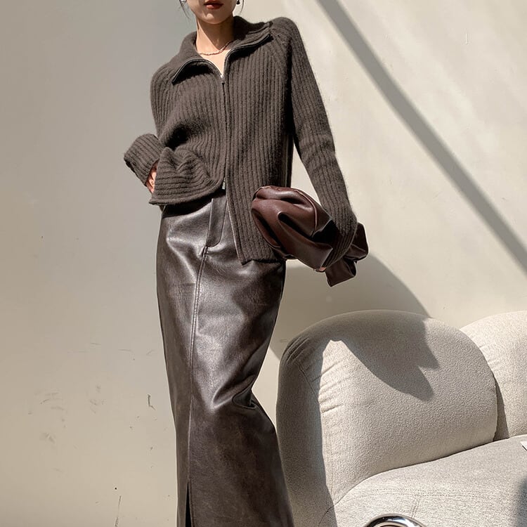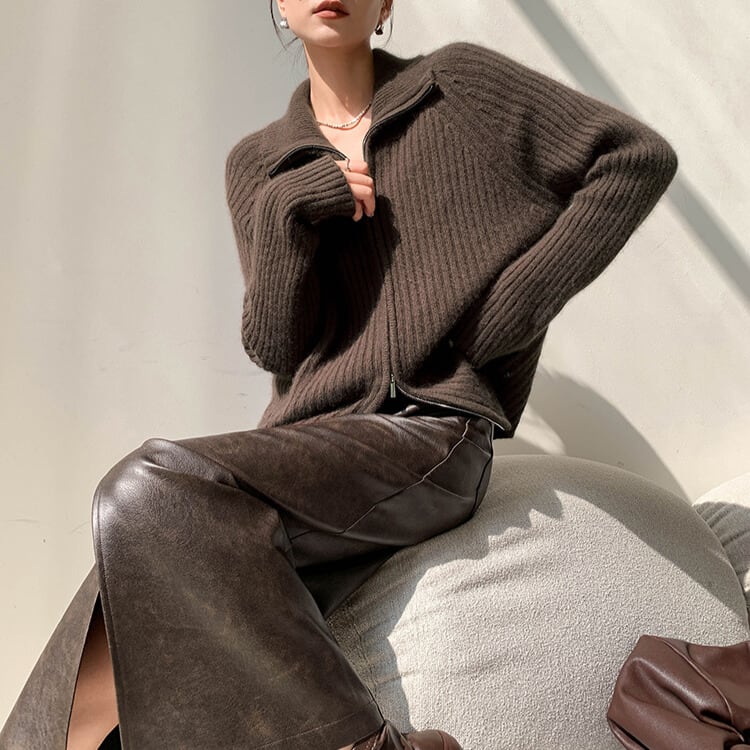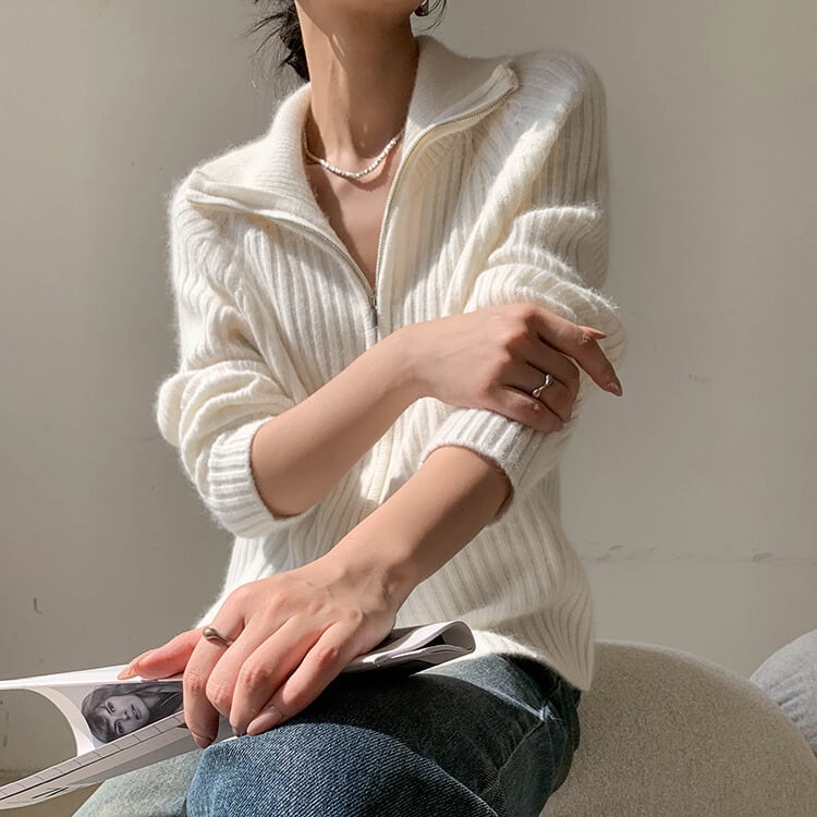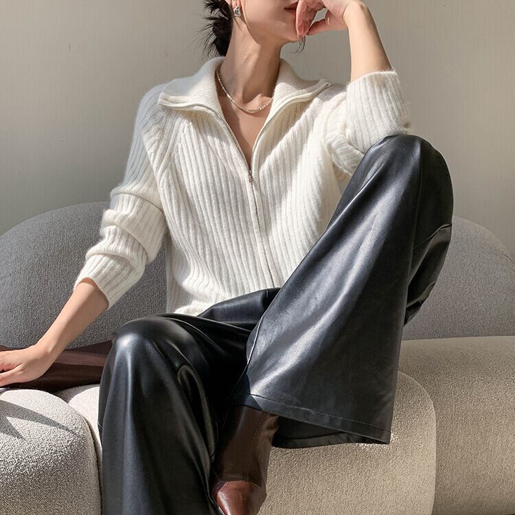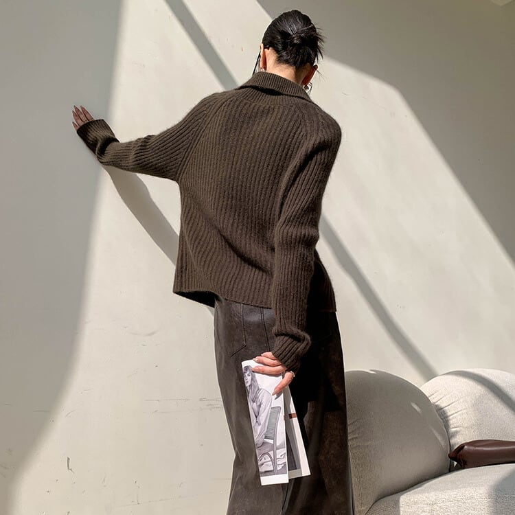 リブ編みの縦ラインが、すっきりとしたシルエットを叶えます。
