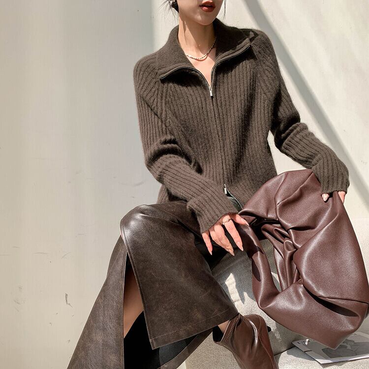ハイネックデザインは、ネックレスなどのアクセサリーとの相性も抜群。