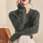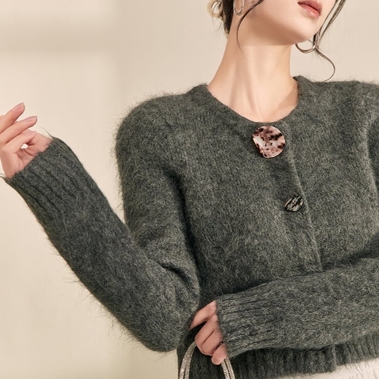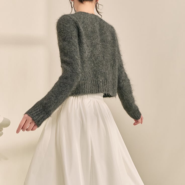 変形ボタン クロップドニットカーディガン H11031