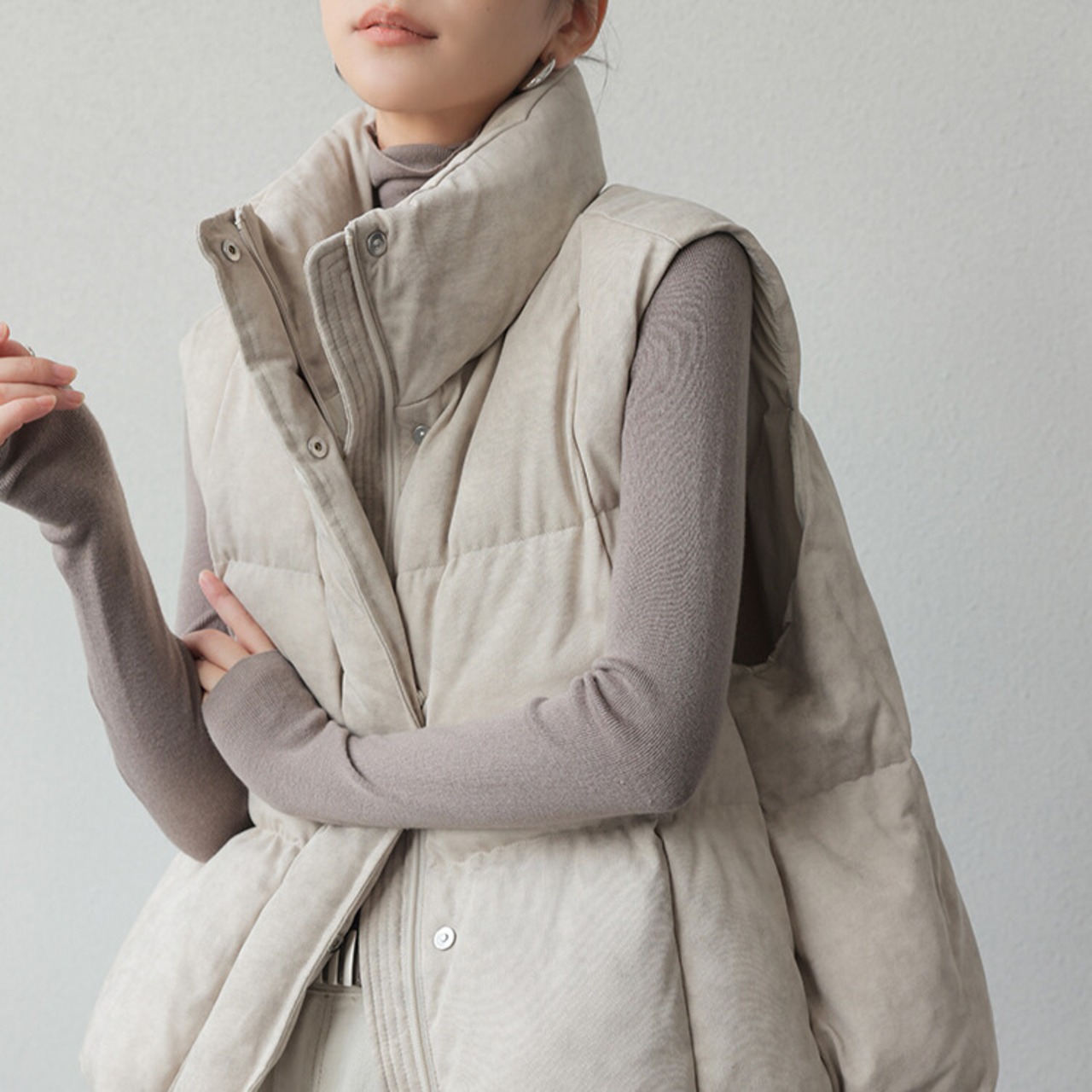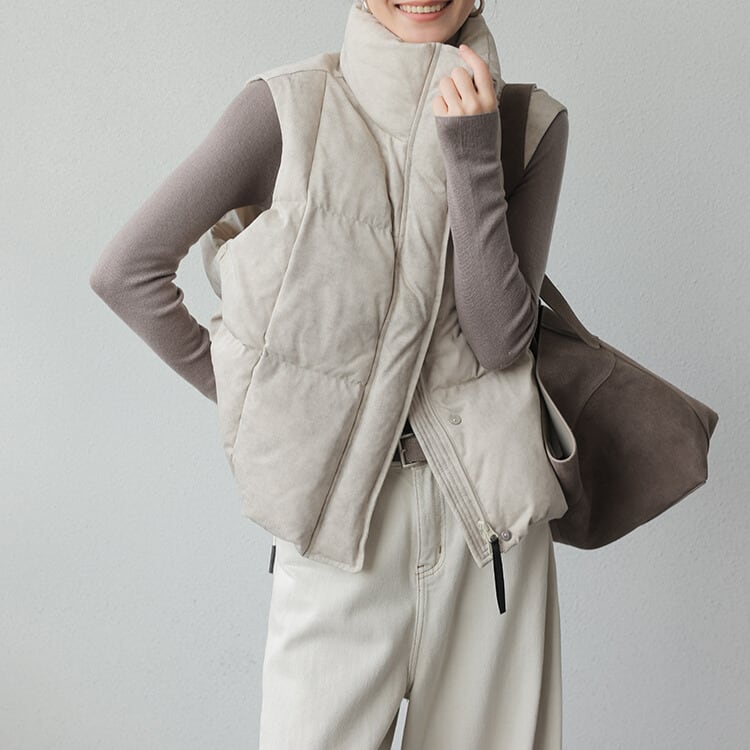 軽くて暖かいダウンベストは、季節の変わり目に重宝するアイテム。