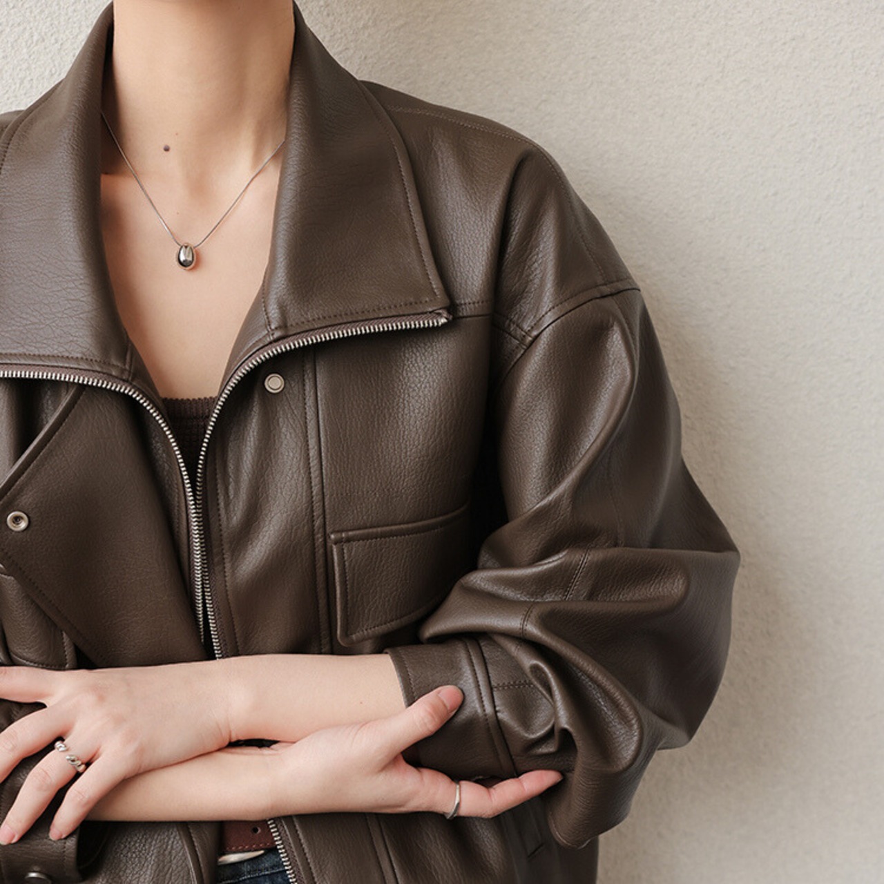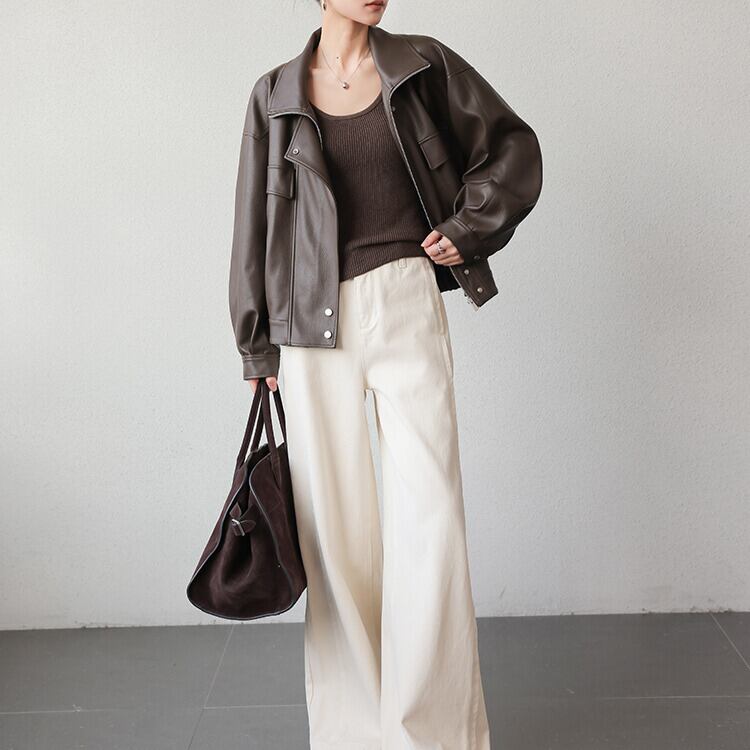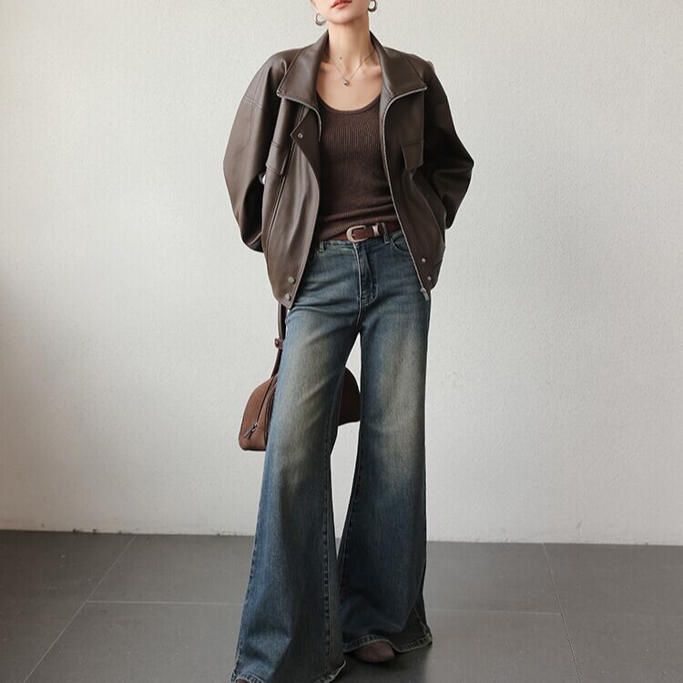 ジーンズと合わせた定番スタイルや、ワンピースに羽織って甘辛ミックススタイルも楽しめます。