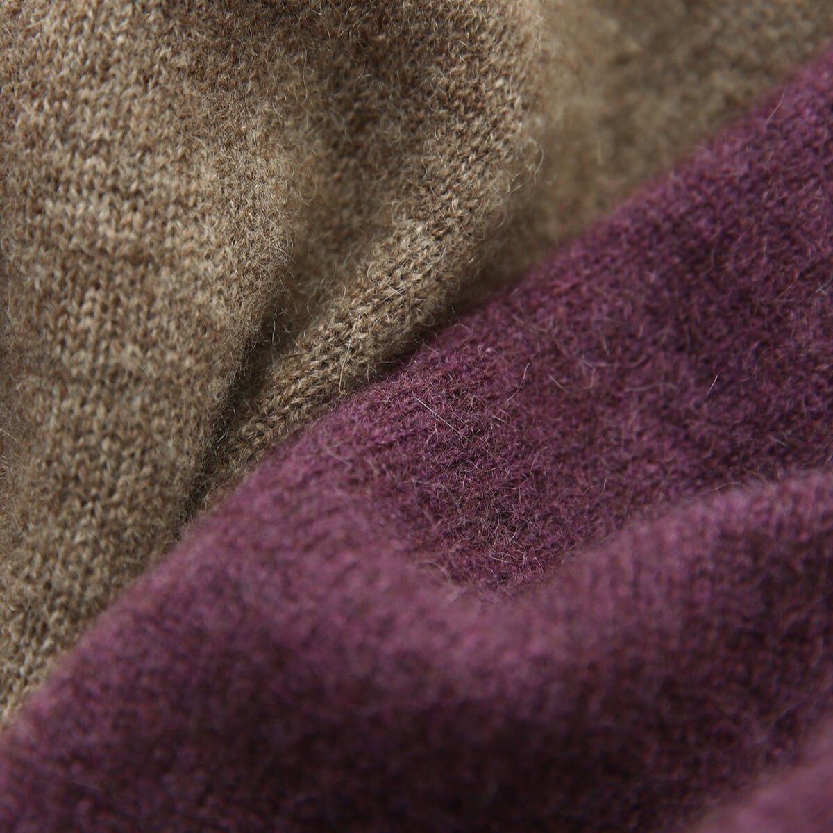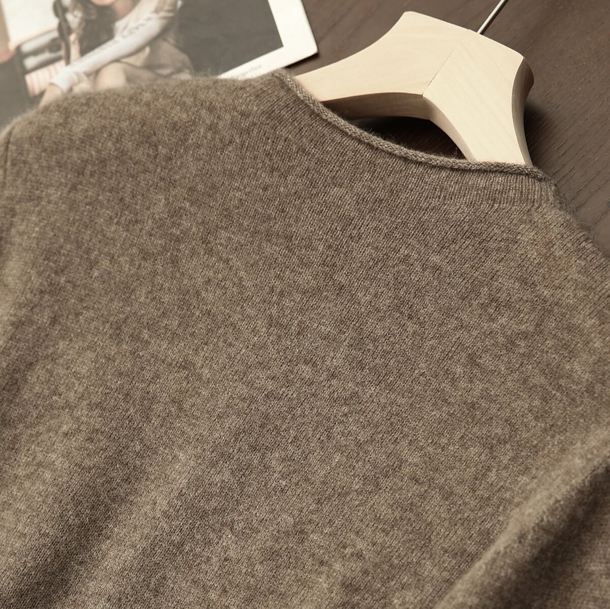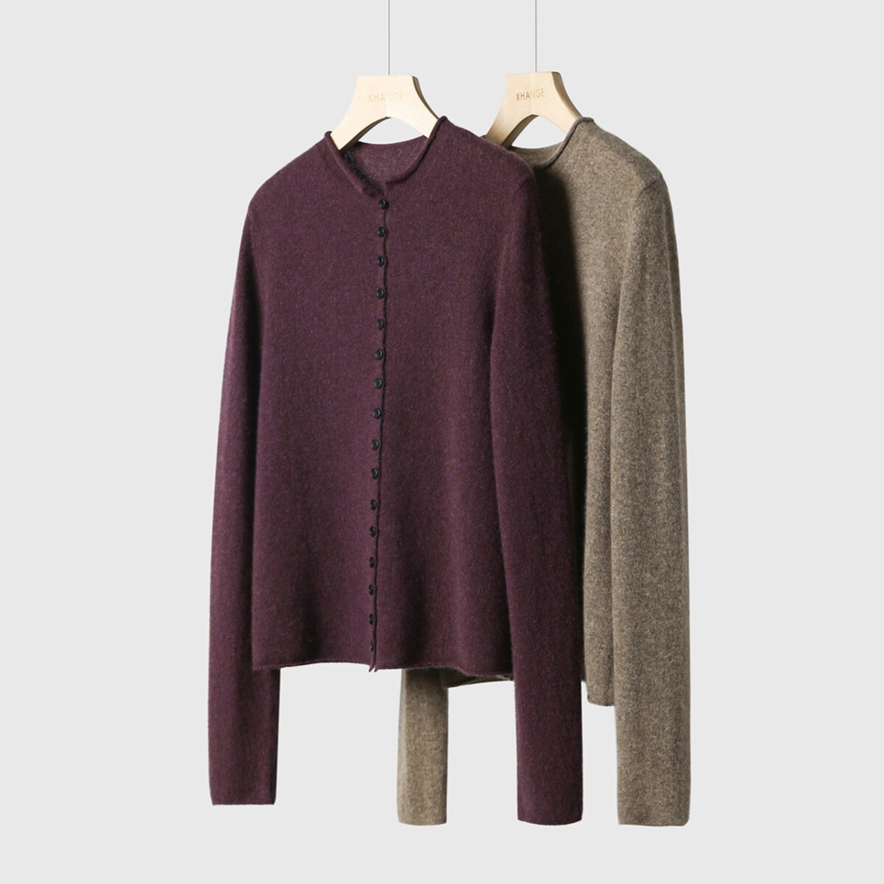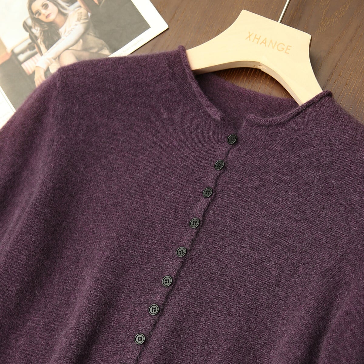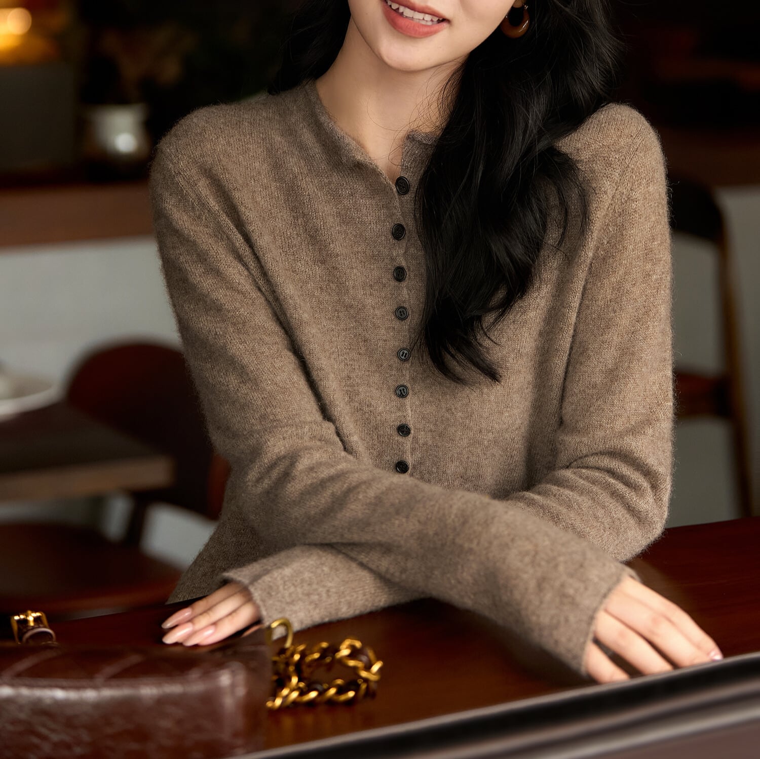 暖かみのあるヤクウールを使用した、ボタンフロントニットカーディガン。