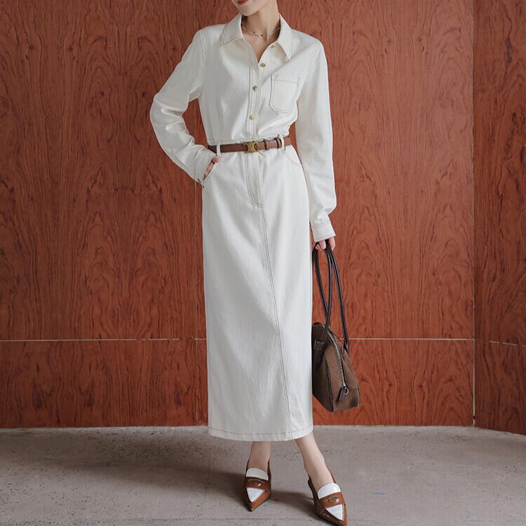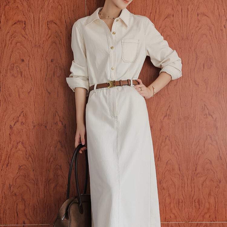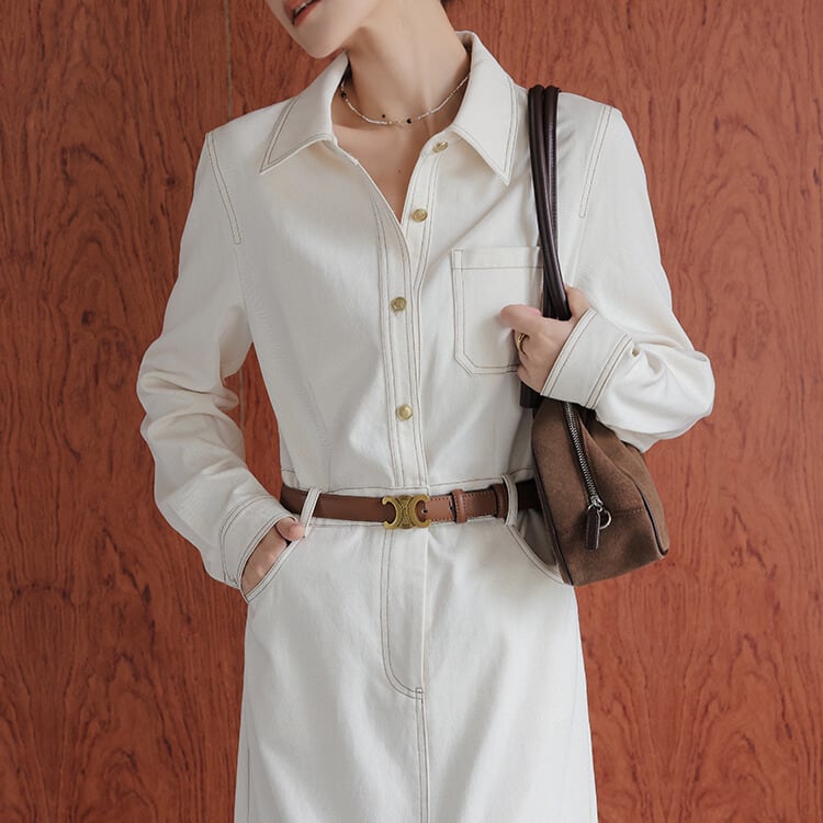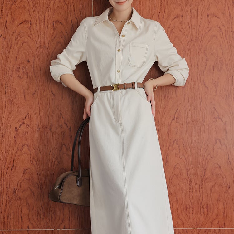 シャツカラー Aライン ワンピース H10605