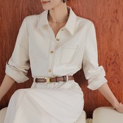 シャツカラーのデザインがきちんと感を演出し、普段使いから少しフォーマルなシーンまで幅広く活躍します。