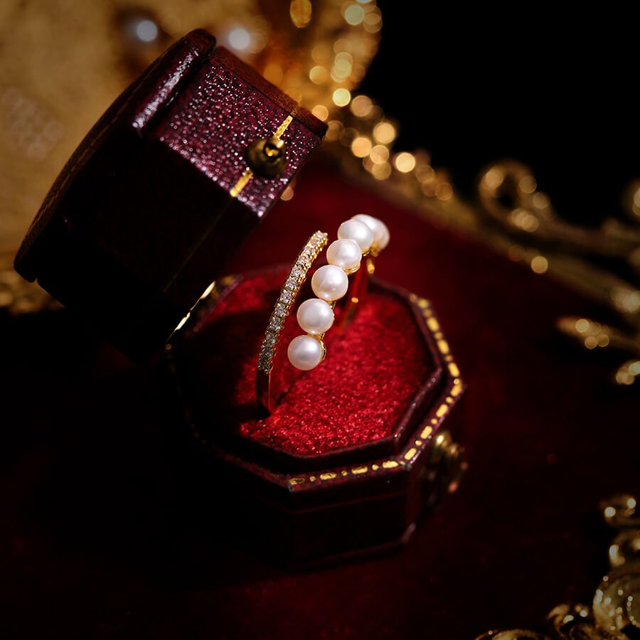 パールとストーンの組み合わせが、上品で華やかな手元を演出します。