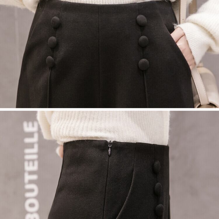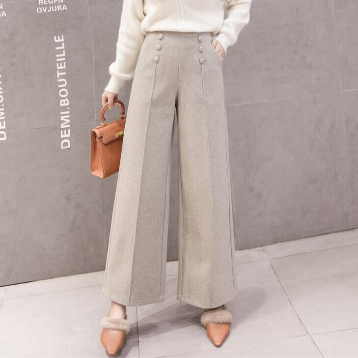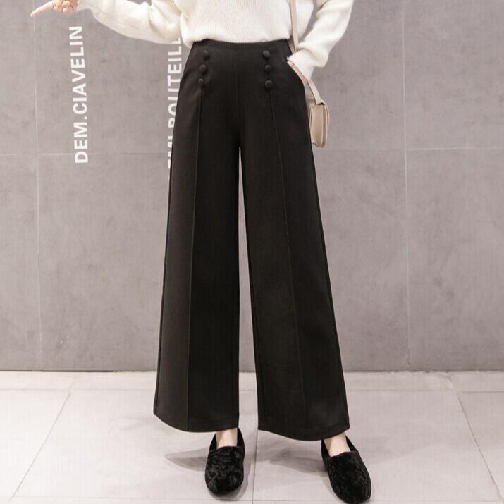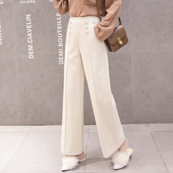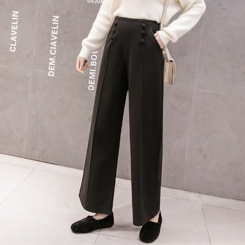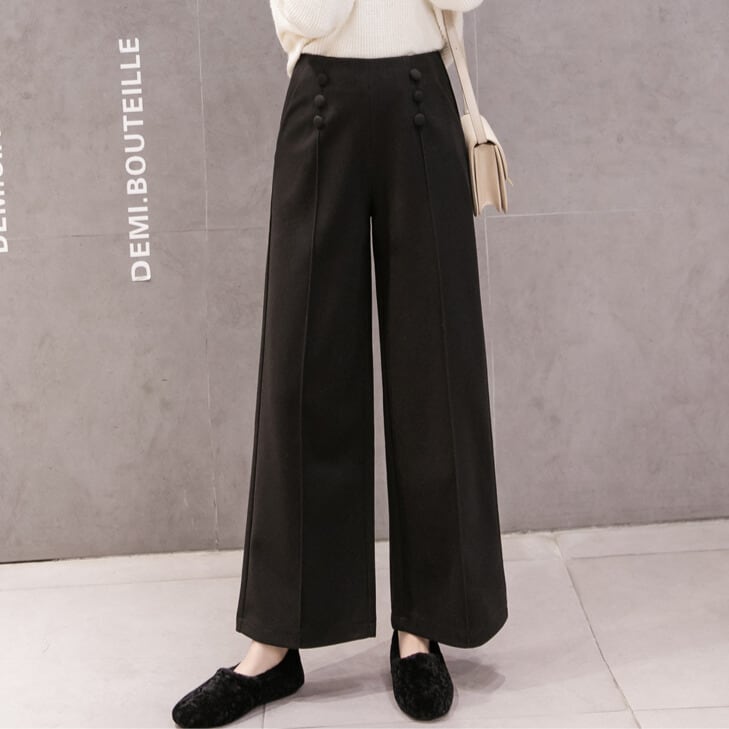 ボタン装飾 ワイドレッグ フルレングス パンツ H10173