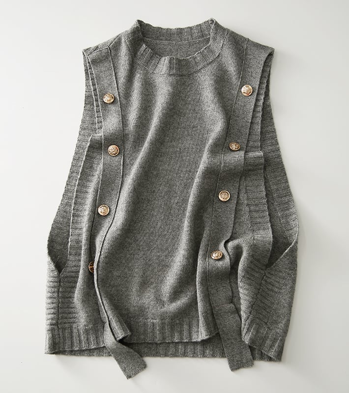 コーディネートの幅を広げるなら、ボタンフロントのニットベスト。