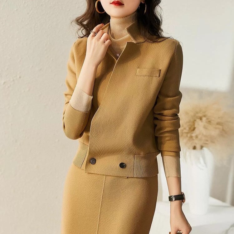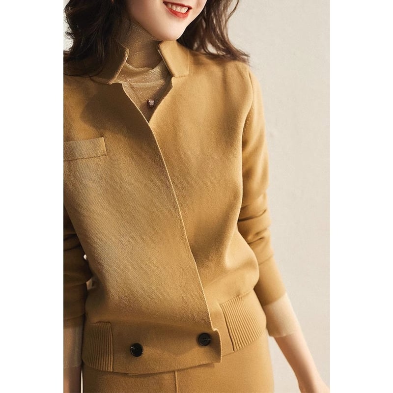 ※『ボタンフロント ニットジャケット H10163』とセットアップとして着用いただけます。