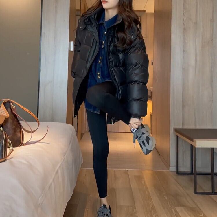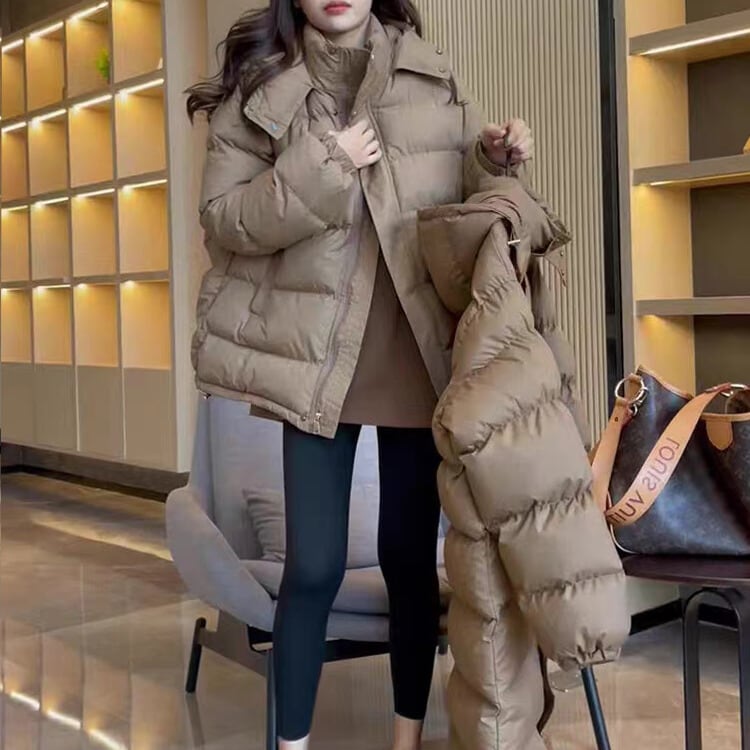 ふっくらとしたシルエットが特徴のダウンジャケット。首元までしっかりと覆うフード付きで、防寒性にも優れています。カジュアルな着こなしにも、きれいめな着こなしにもマッチする、汎用性の高いアイテムです。