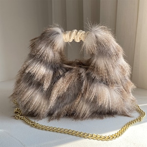 フェイクファー チェーンストラップ ハンドバッグ H10172