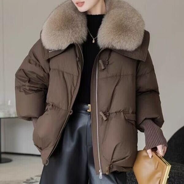 首元のファーがエレガントな印象のダウンジャケットです。普段使いはもちろん、少しフォーマルな装いにも合わせやすいデザイン。両サイドにはポケットがあり、利便性も兼ね備えています。袖口はリブニットになっているので、風を通しにくく、暖かさを保ちます。