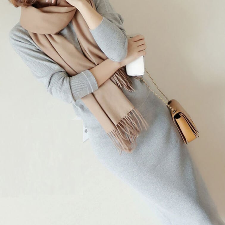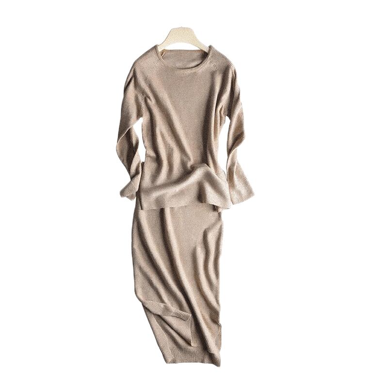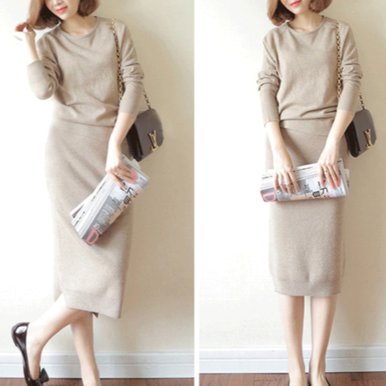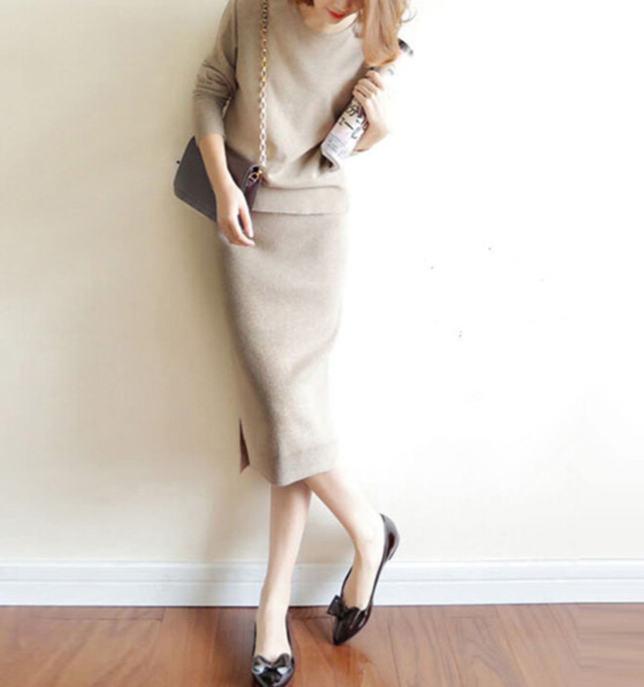 Iラインのシルエットが美しいニットセットアップ。