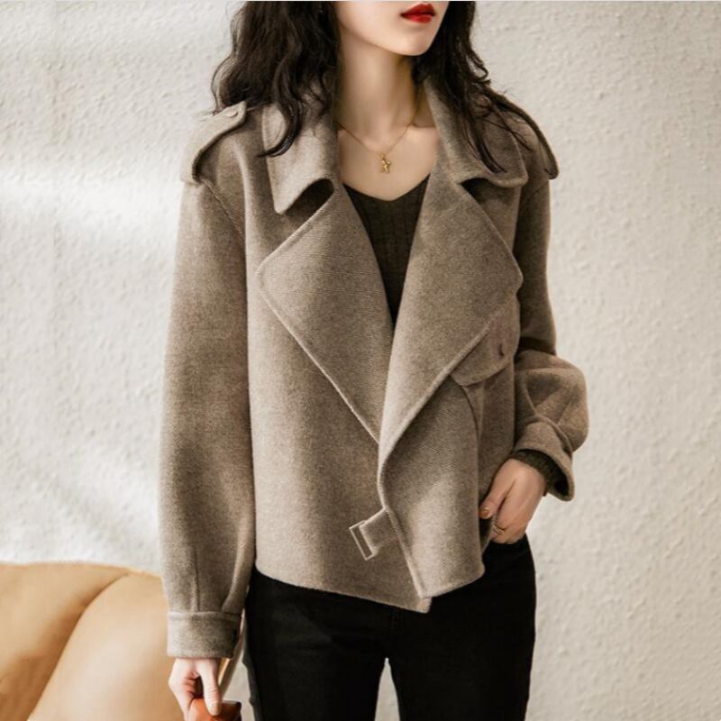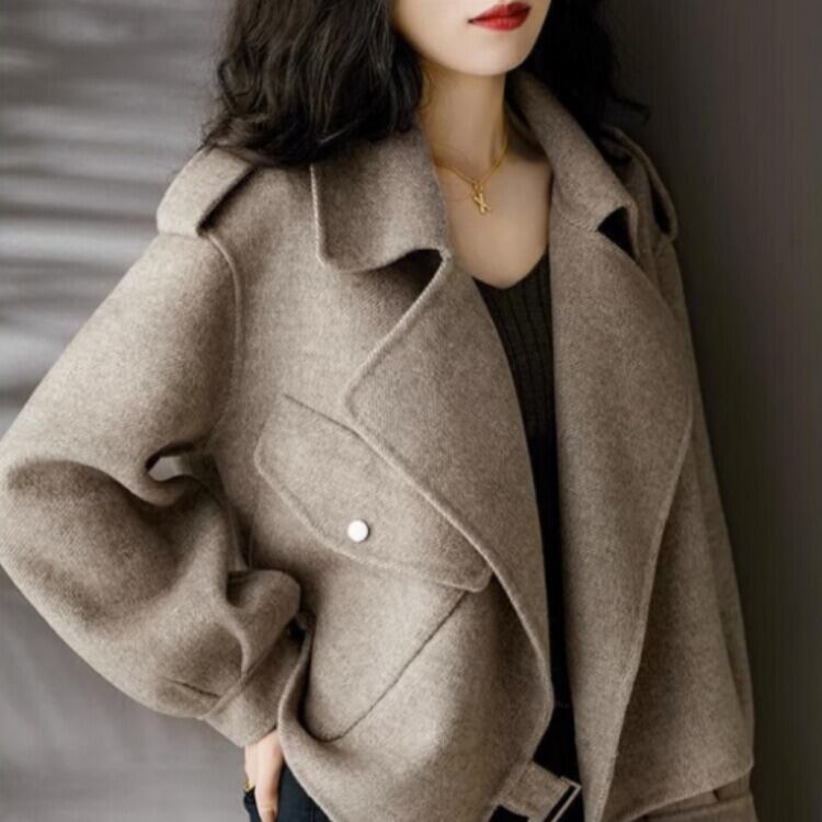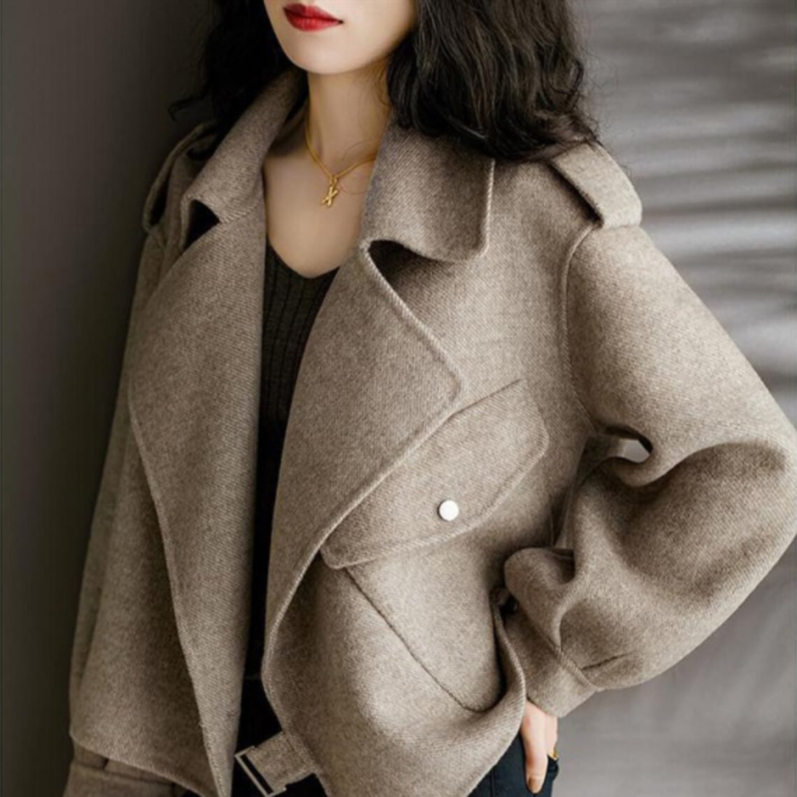 オープンカラーのデザインが、首元をすっきりと見せてくれます。