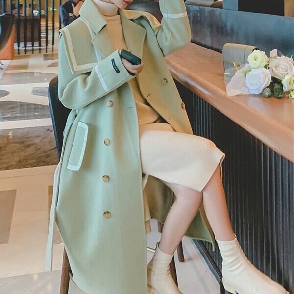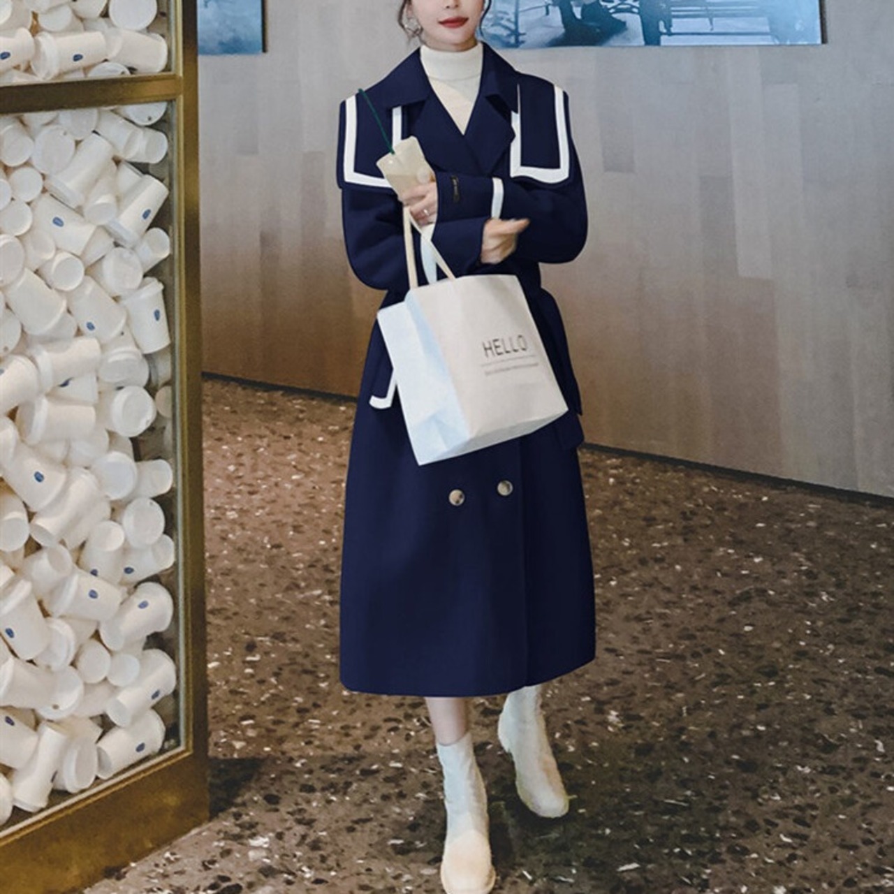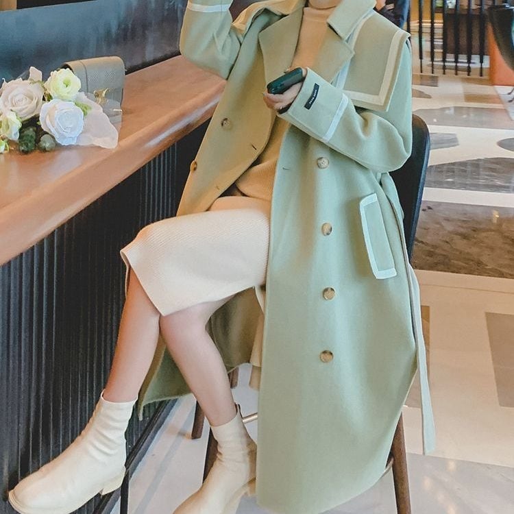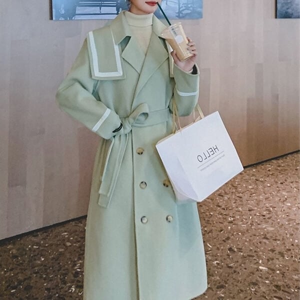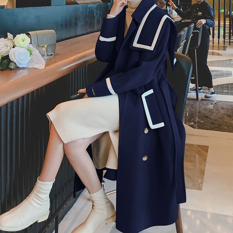 セーラーカラー ベルト付きコート H10118