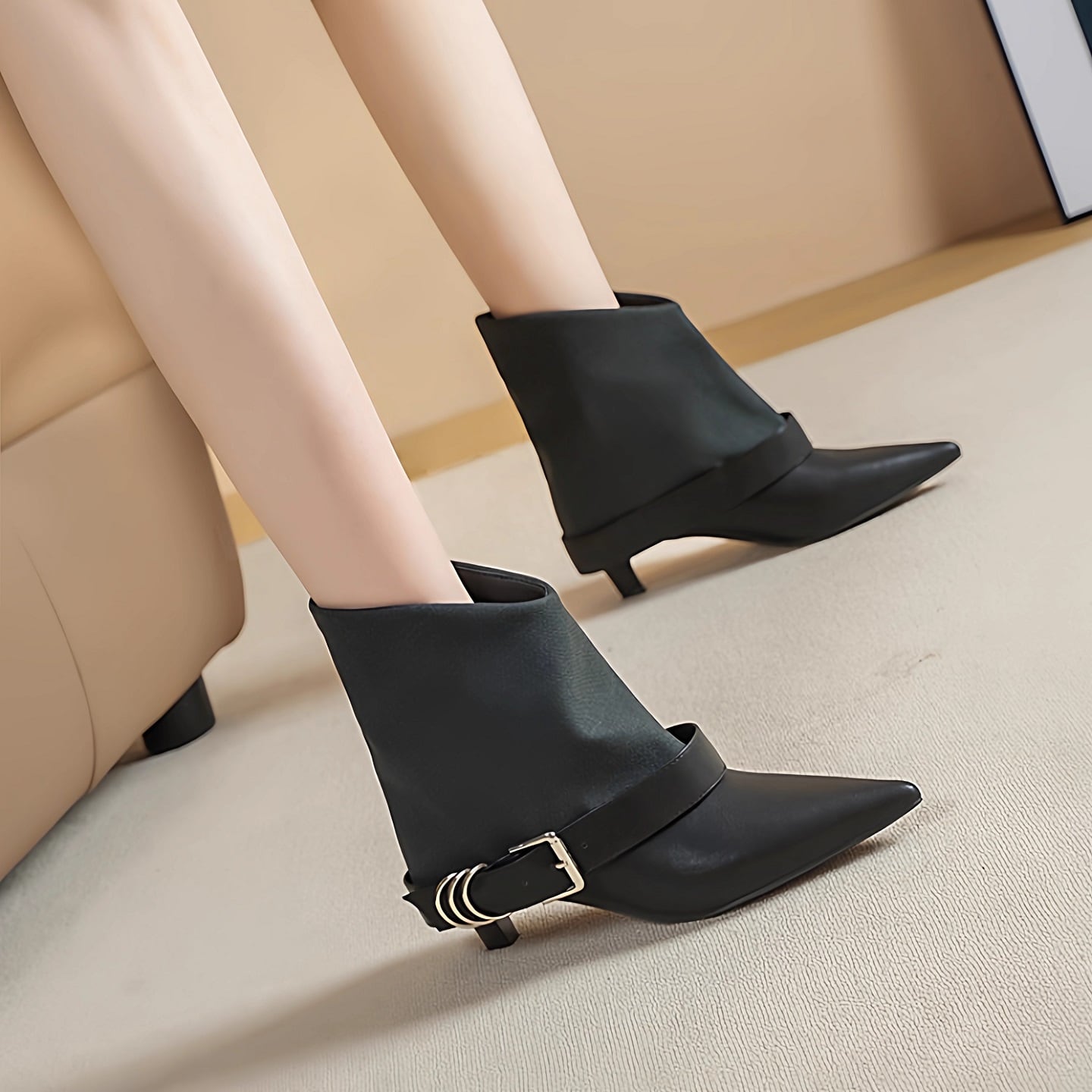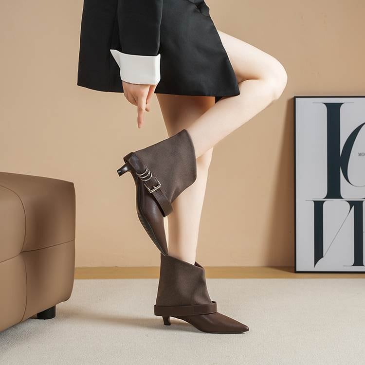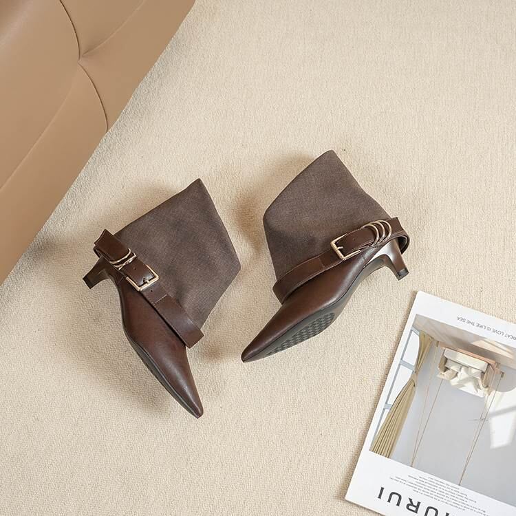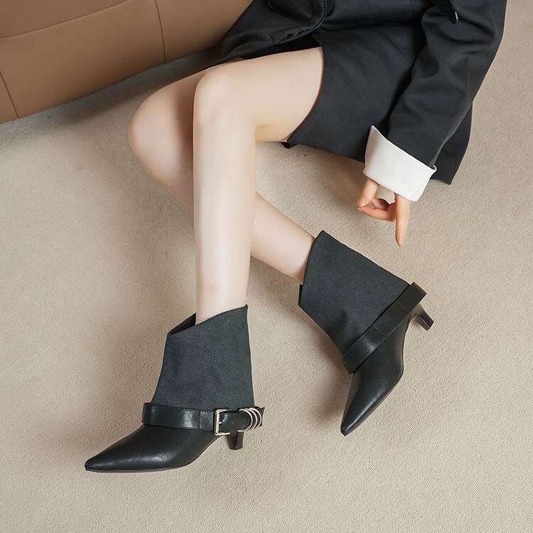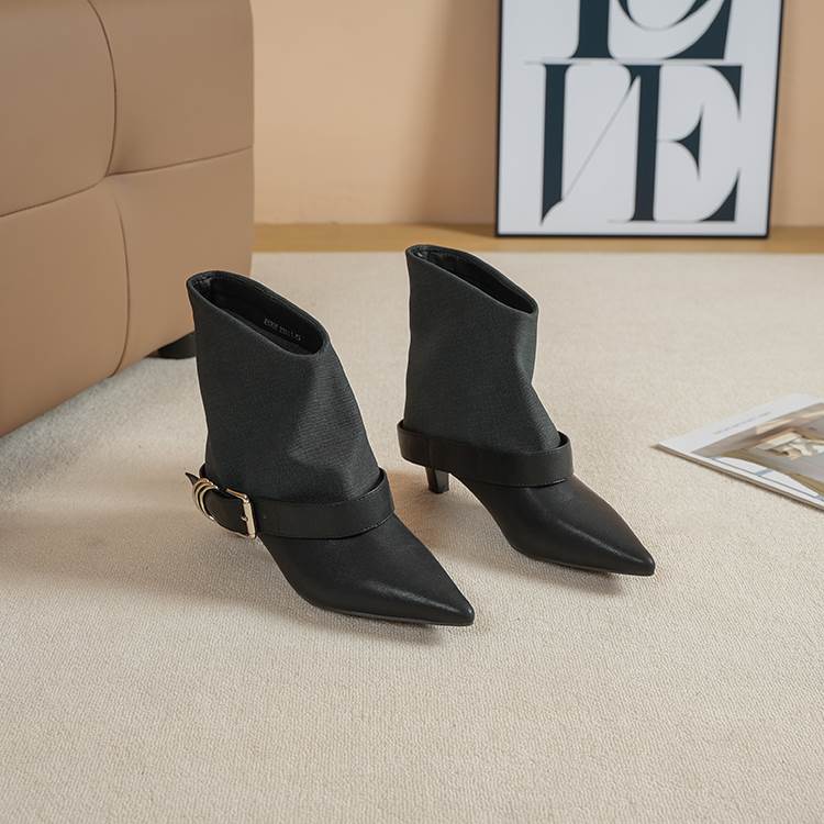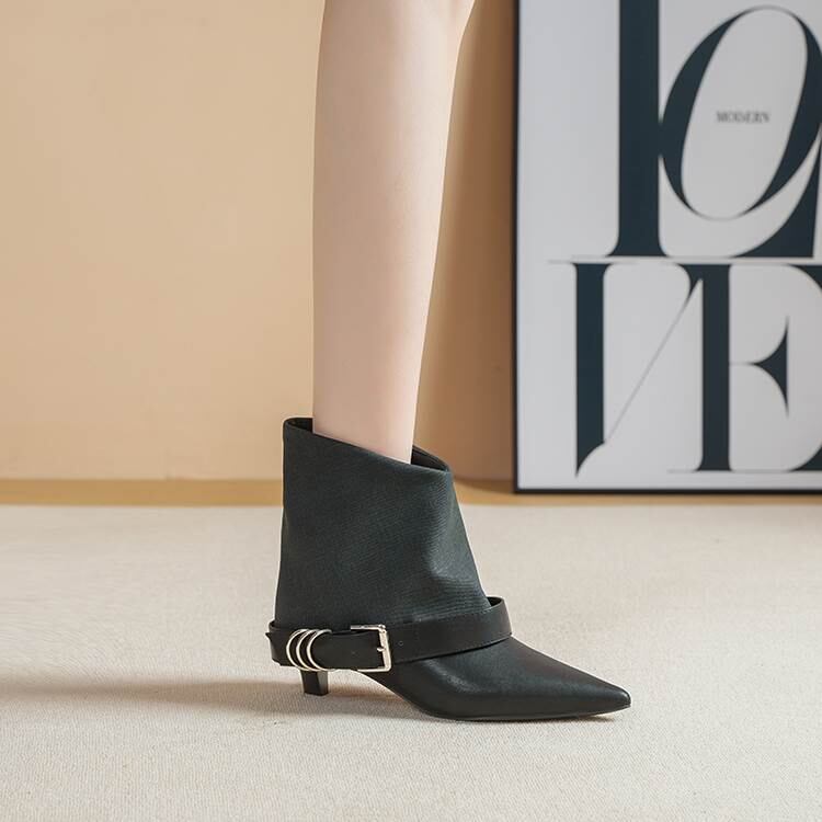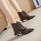 バックル付き ポインテッドトゥ ショート ブーツ H10107