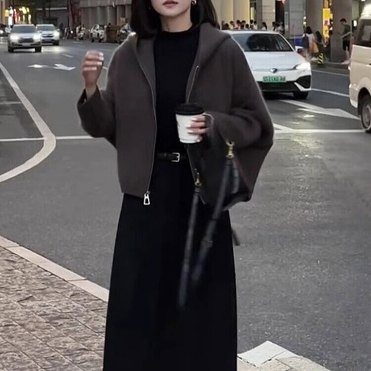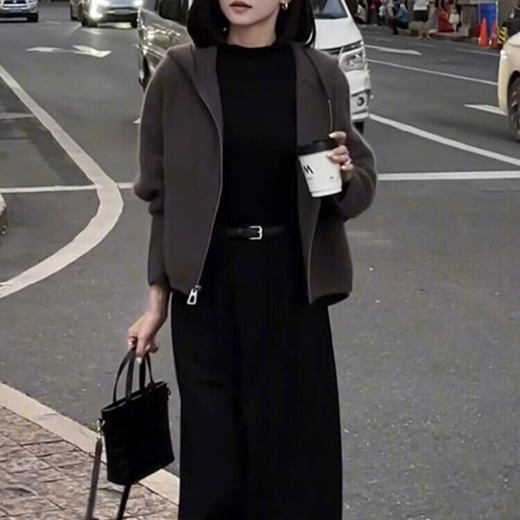 カジュアルにもきれいめにも着こなせるフード付きジップアップジャケット。ジップを閉めてトップスとして、前を開けて羽織りものとして、様々な着こなしが楽しめます。ちょっとしたお出かけにも、おうちでのリラックスタイムにもおすすめです。