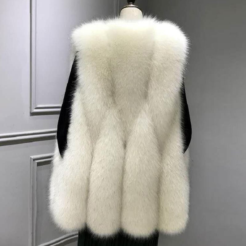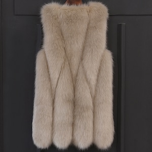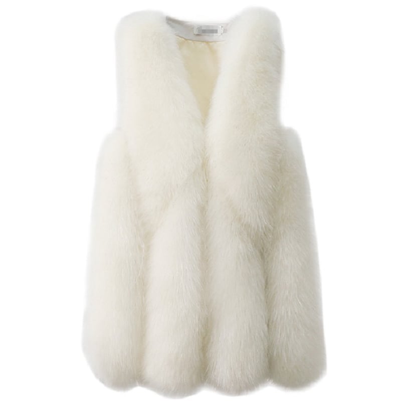 シンプルなコーディネートに華やかさを添えるフェイクファーベスト。