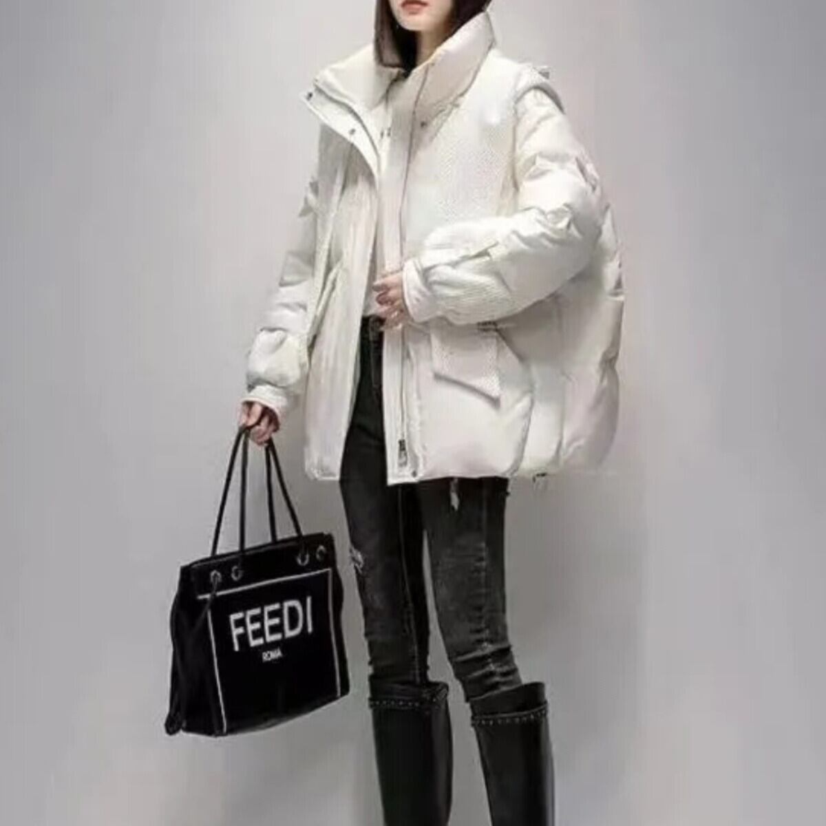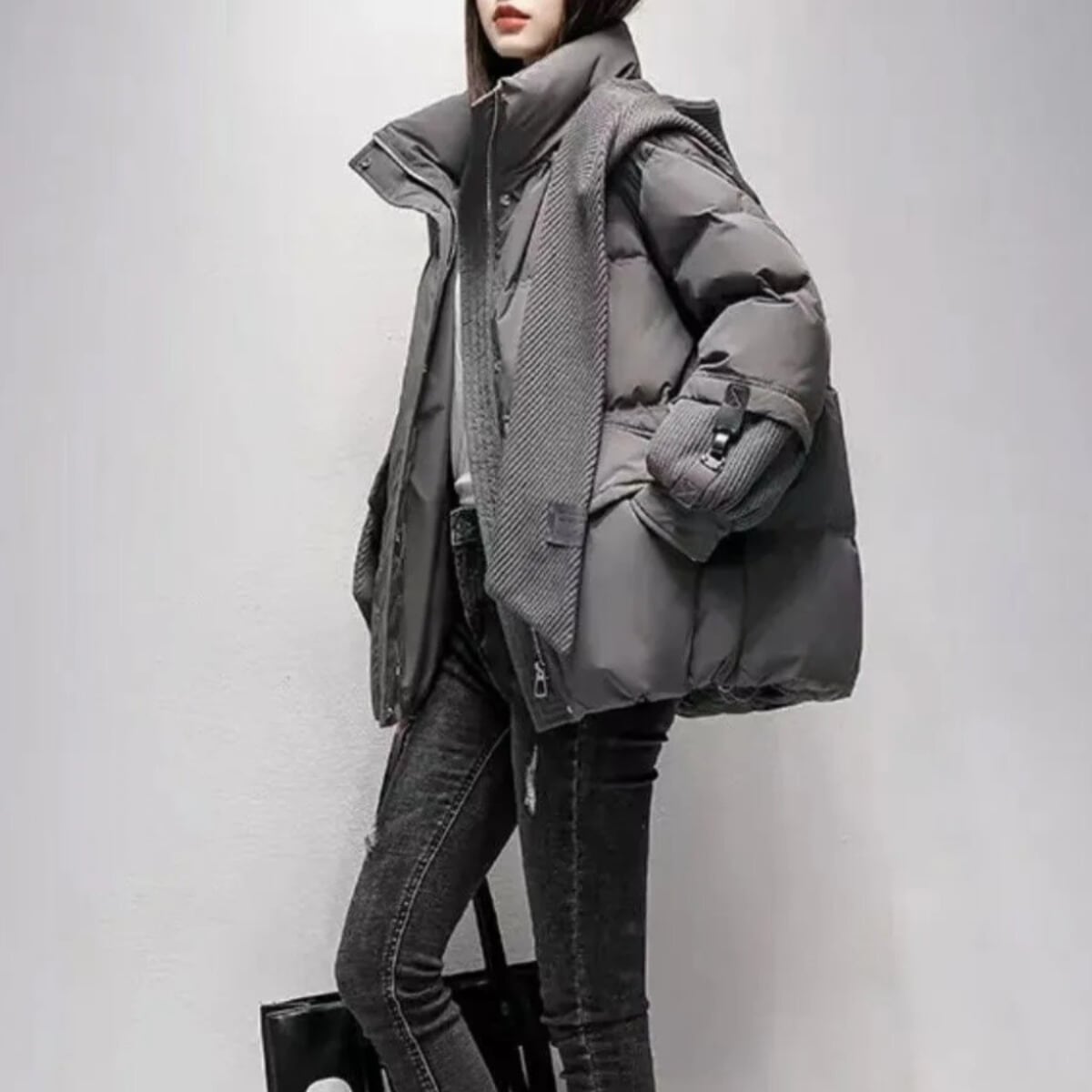 フードとマフラーは取り外し可能なので、気温やコーディネートに合わせてアレンジできます。