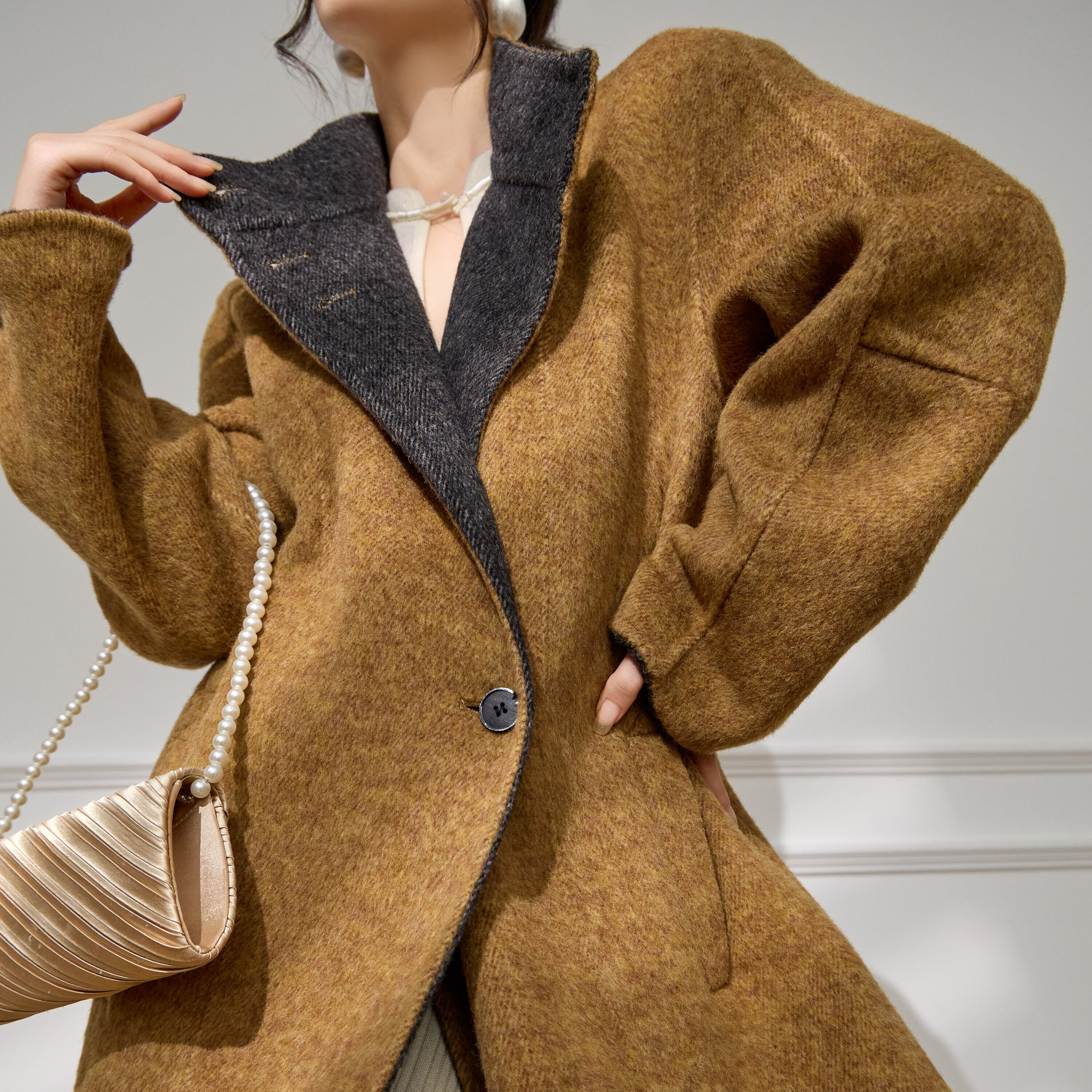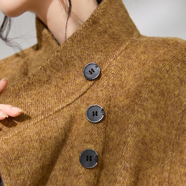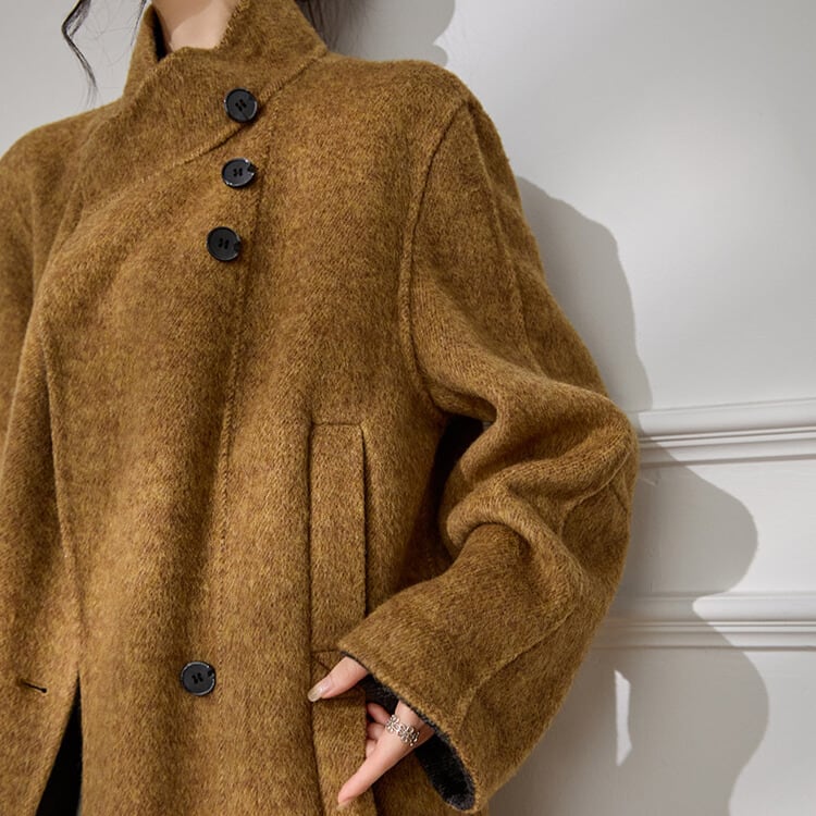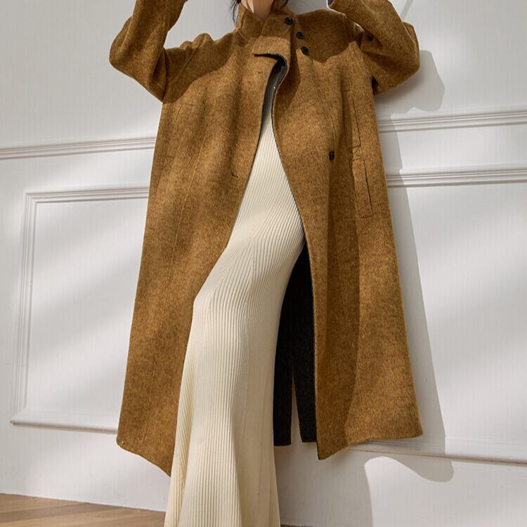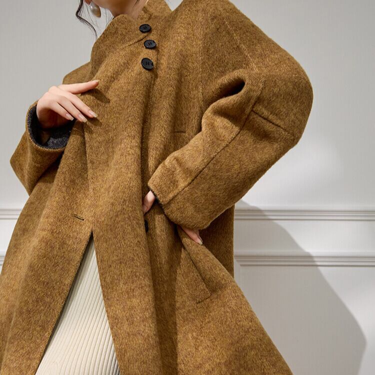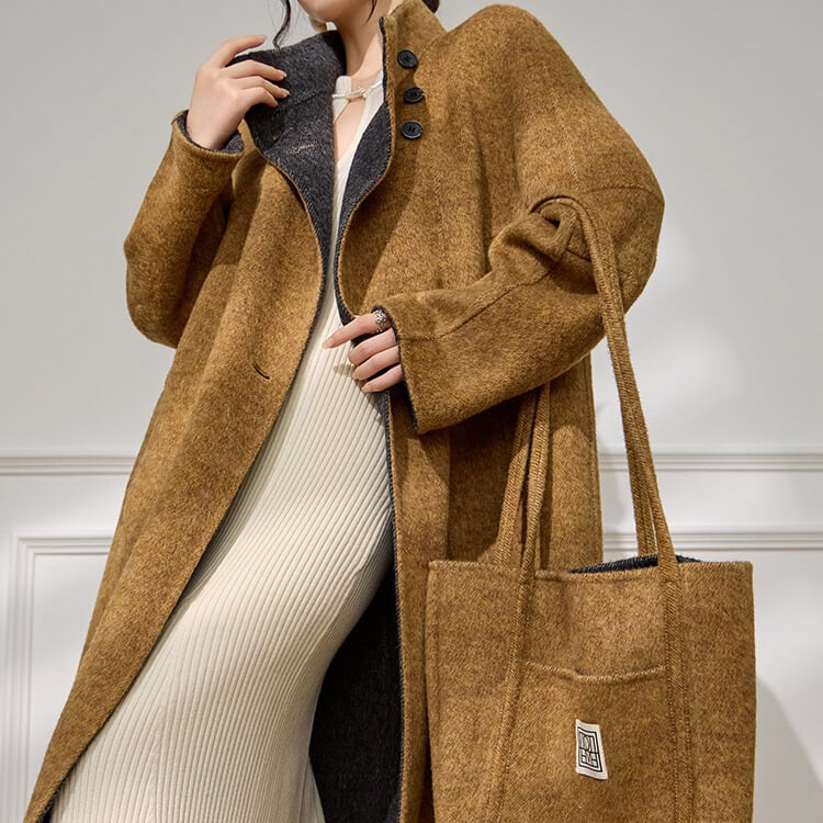 比翼仕立てが洗練された印象を与え、普段使いからオフィスシーンまで幅広く活躍します。