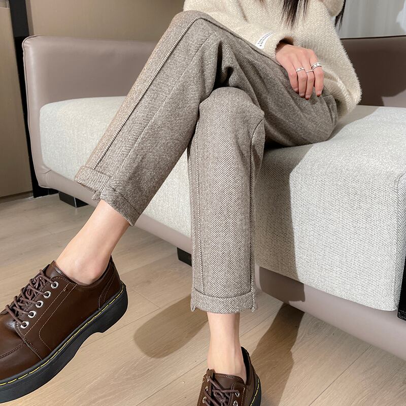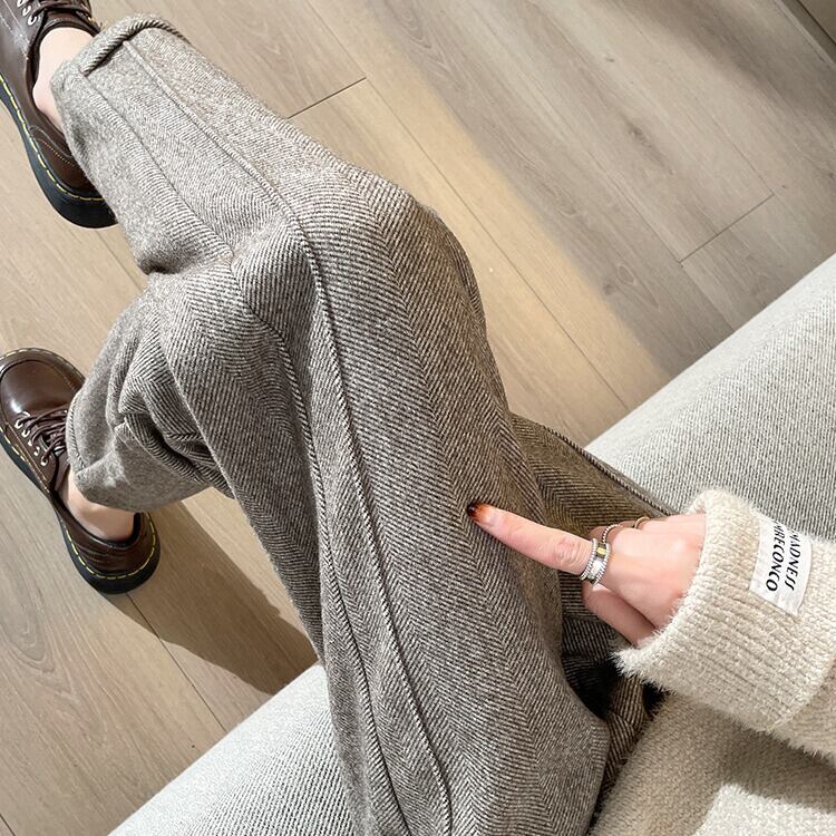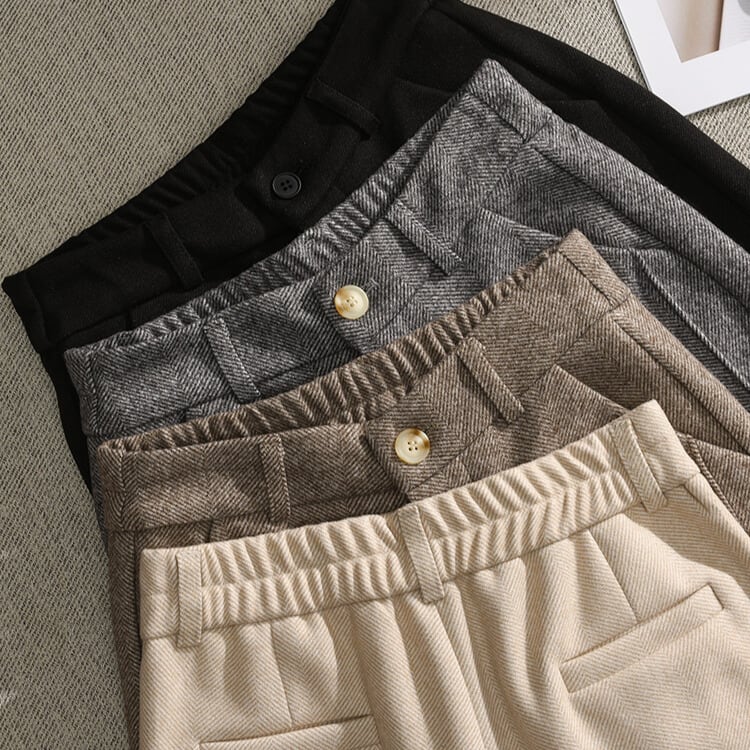 落ち着いた印象のヘリンボーン柄が、大人の着こなしを演出するテーパードパンツ。