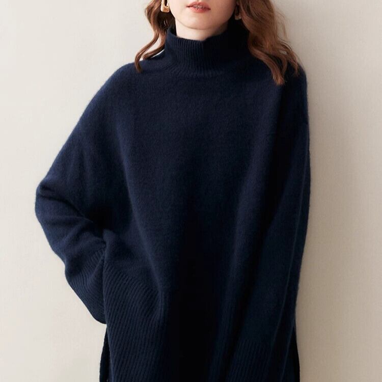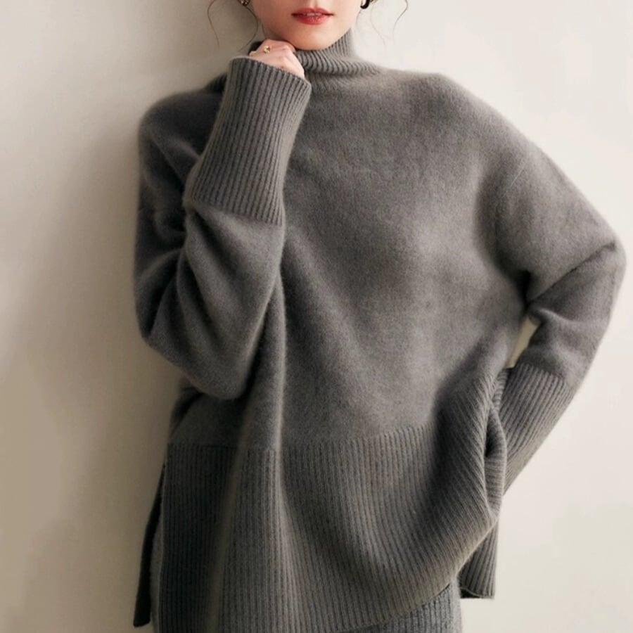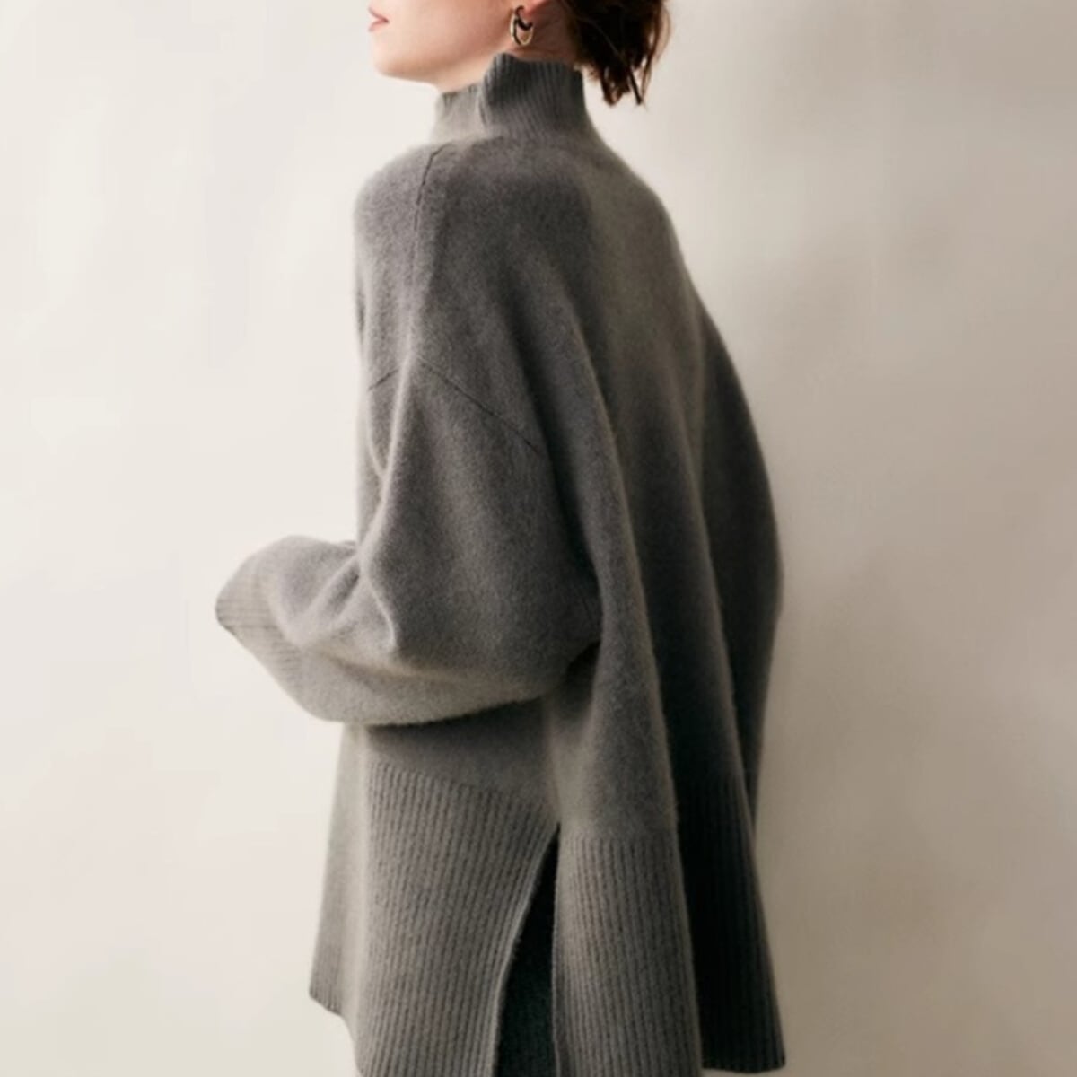 シンプルなデザインの中に、サイドスリットがアクセントになったニット。