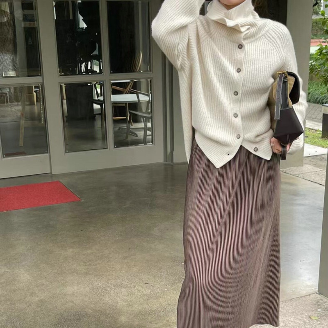 首元を優しく包み込み、暖かさを保ちながらも、すっきりとした印象を与えます。