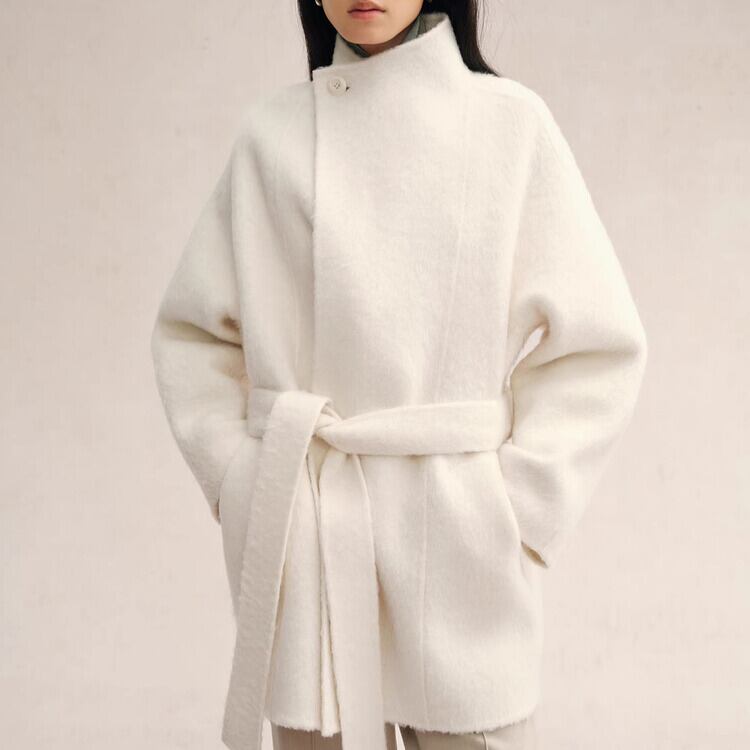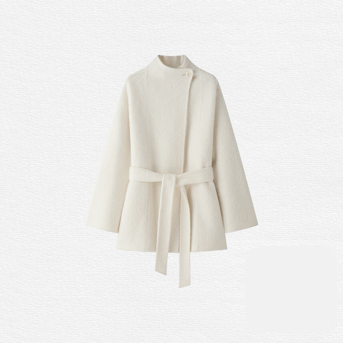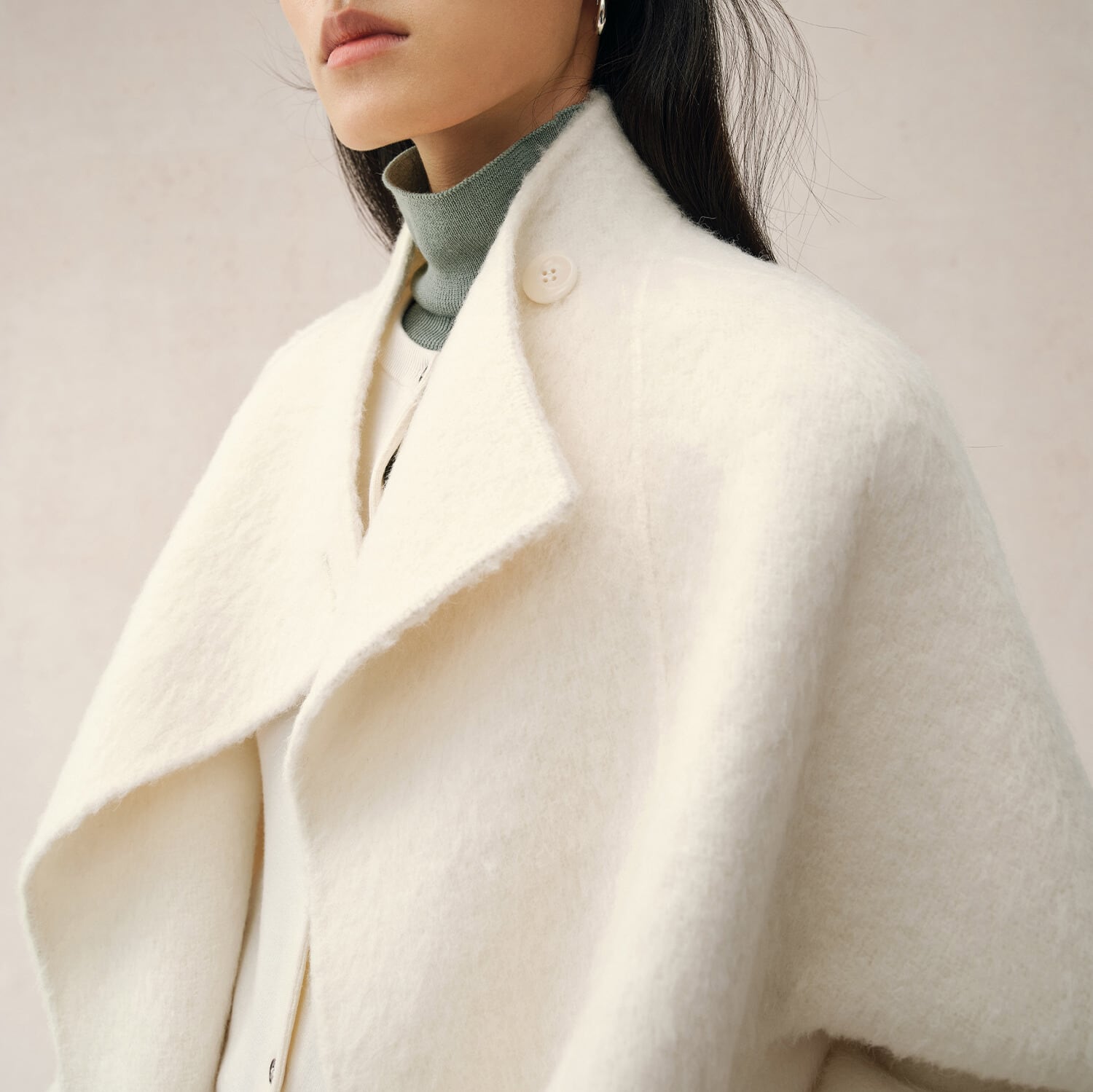 シンプルなデザインの中に、女性らしさが光るミドルコート。