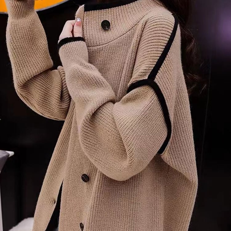 ボタンフロント ドロップショルダー ニットカーディガン H11020