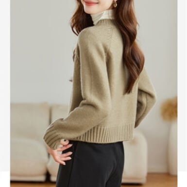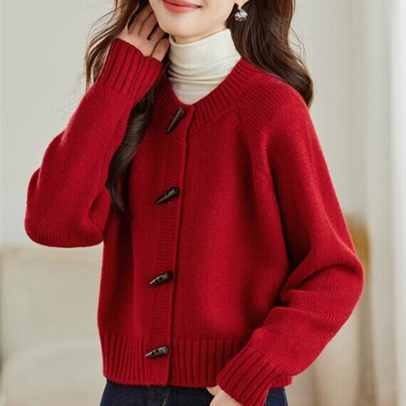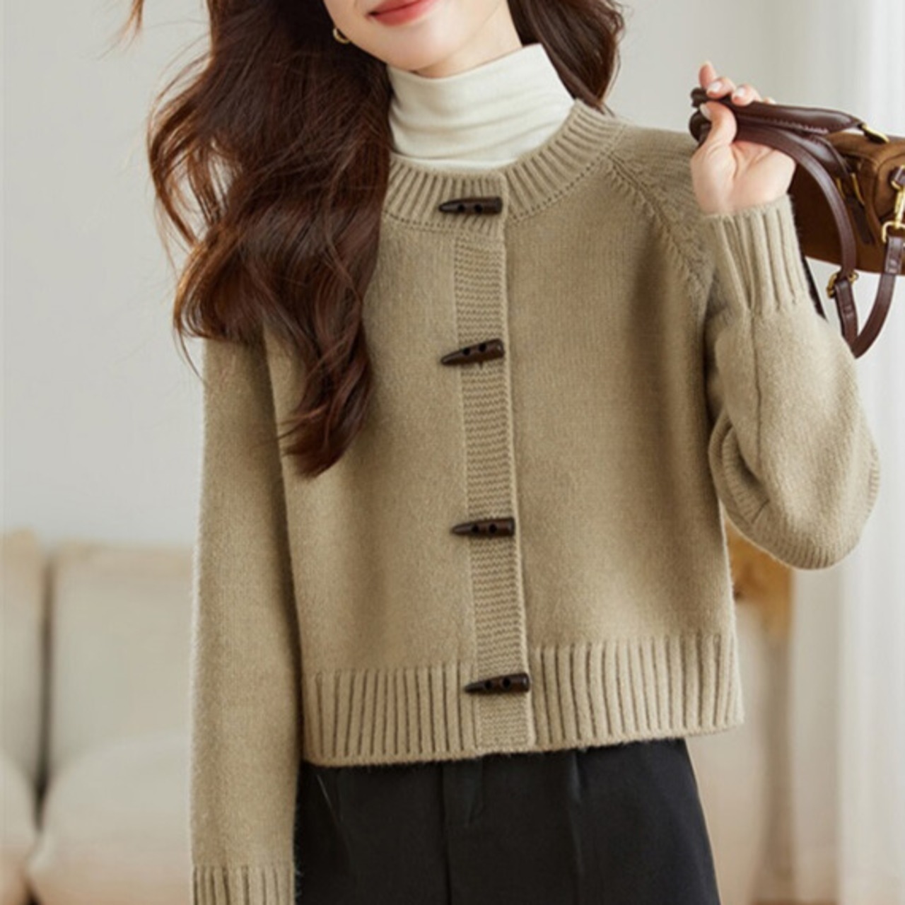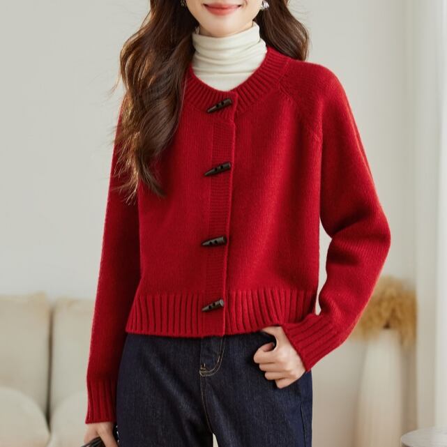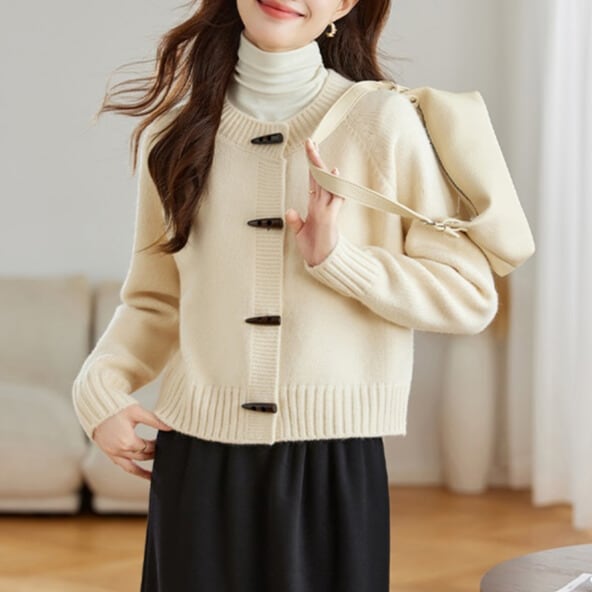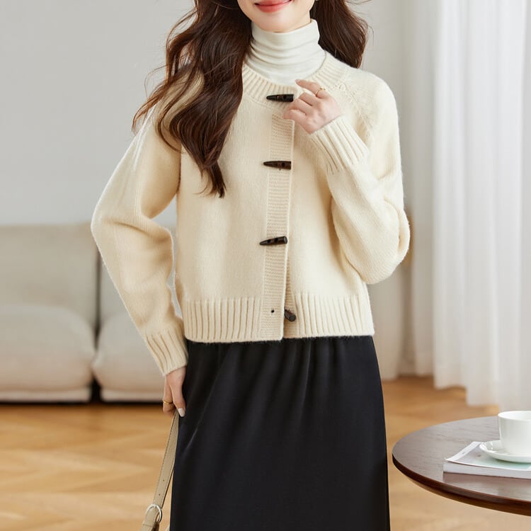トグルボタンがアクセントになった、クロップド丈のニットカーディガン。