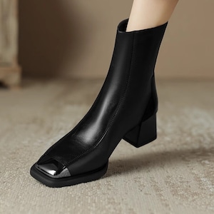切替デザイン スクエアトゥ ショートブーツ H10204