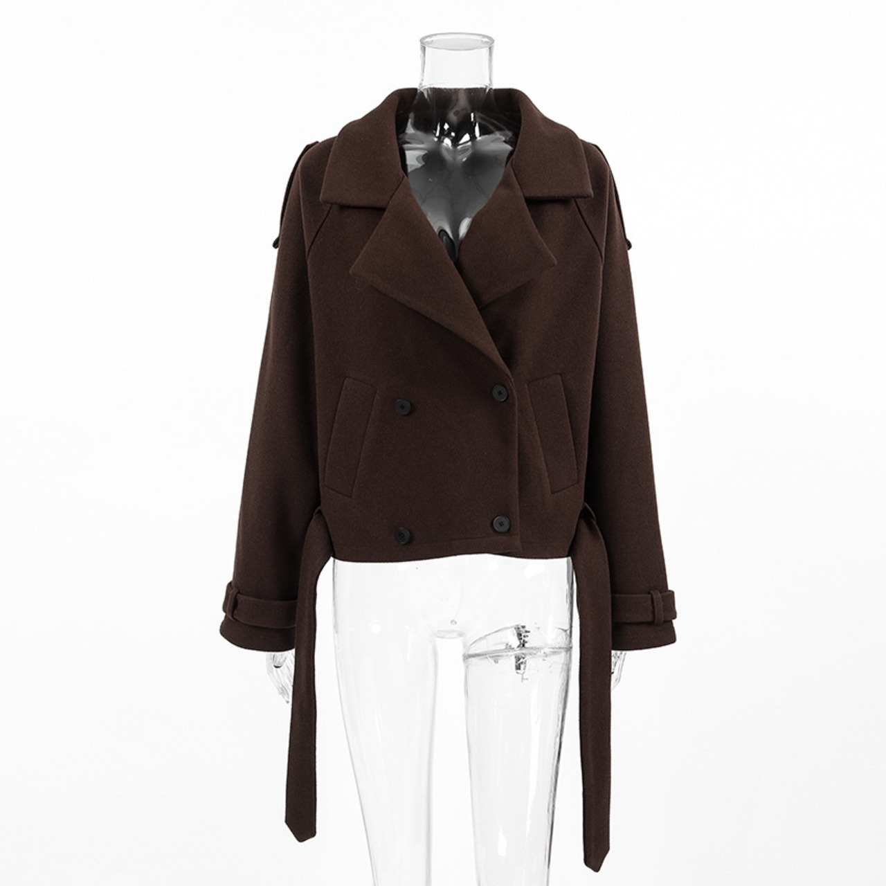 ダブルブレスト ベルト付き ショート丈 ジャケット H10526