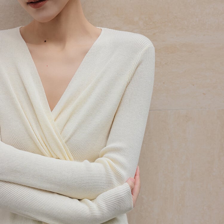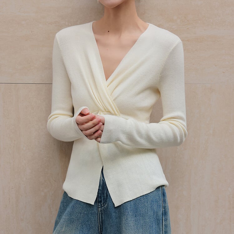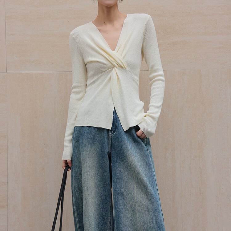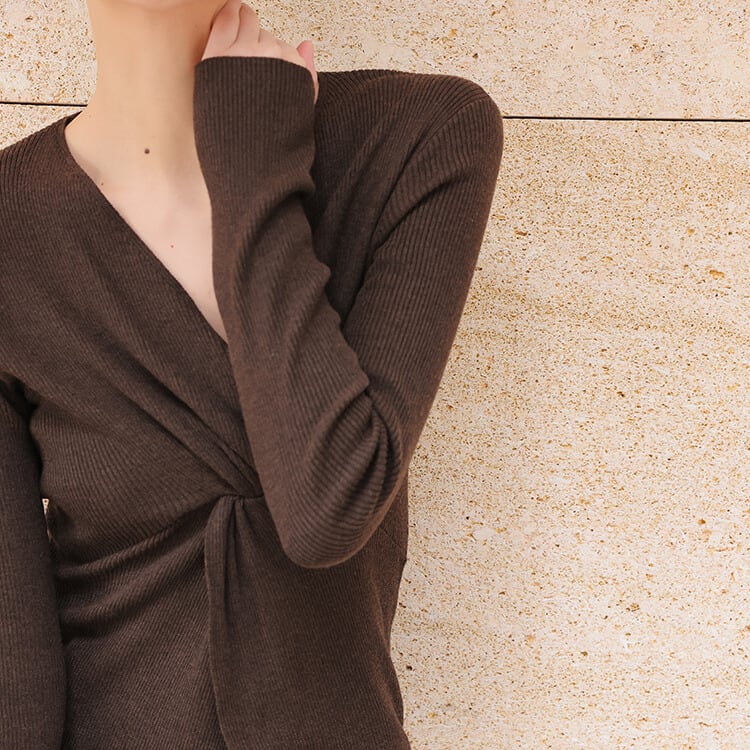 シンプルなシルエットながらも、ツイストデザインがアクセントになり、洗練された印象を与えます。