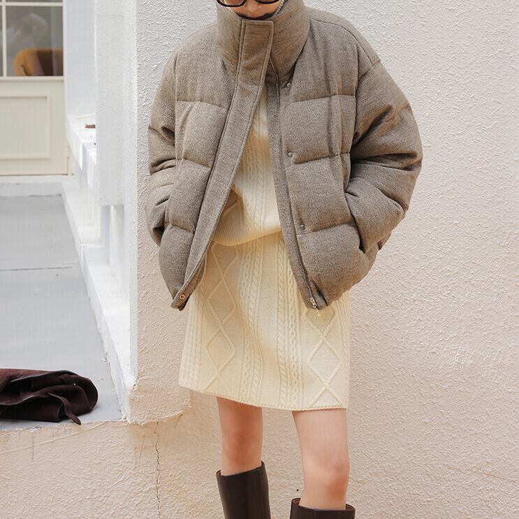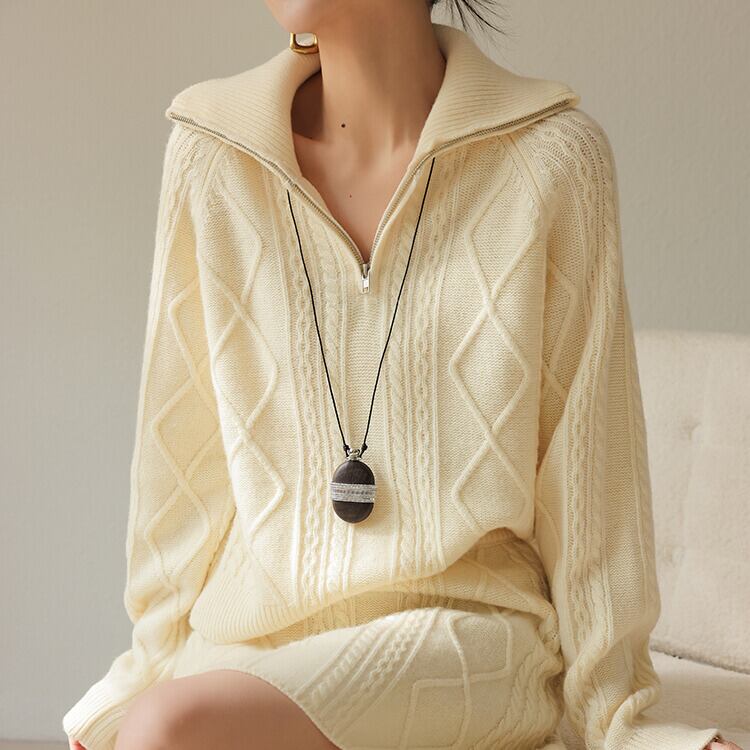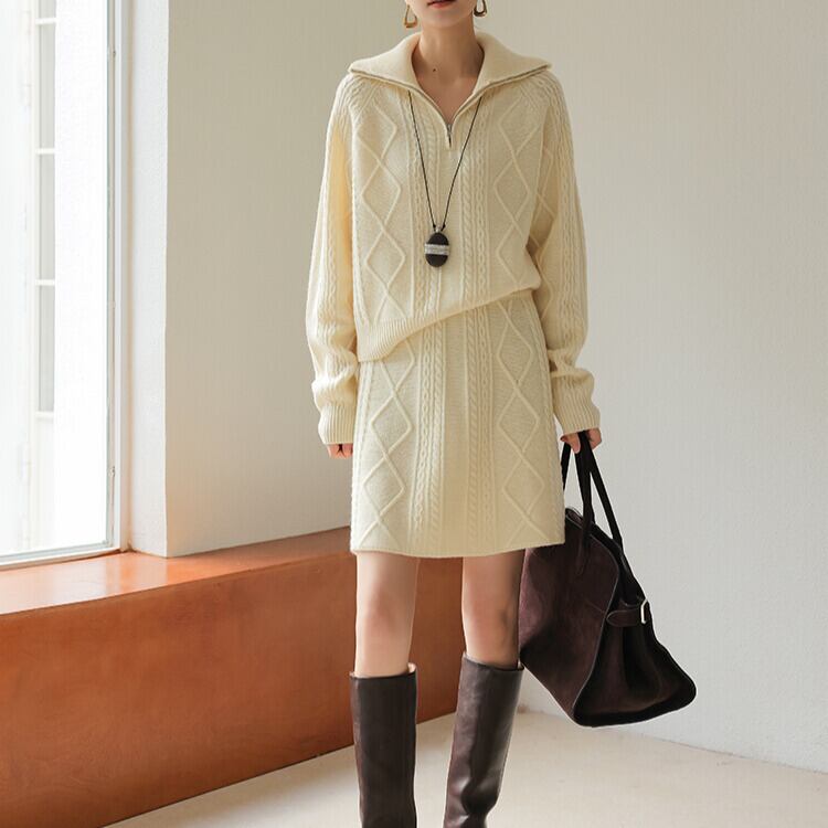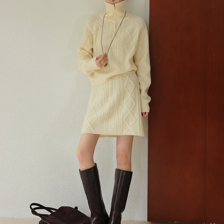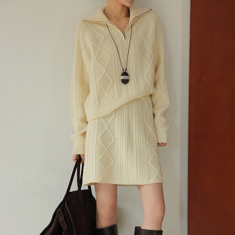 ※『ケーブル編み ハーフジップ ニット H11058』とセットアップとして着用いただけます。