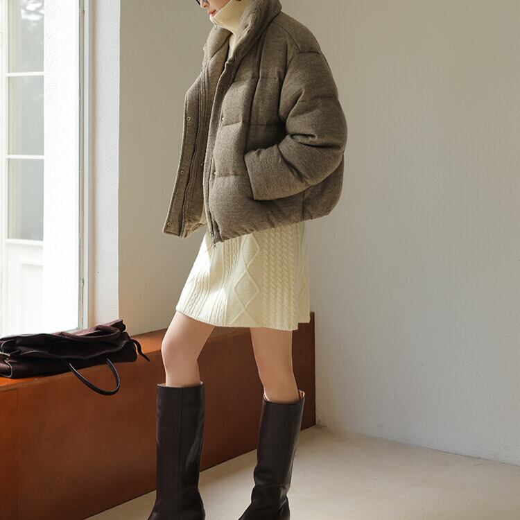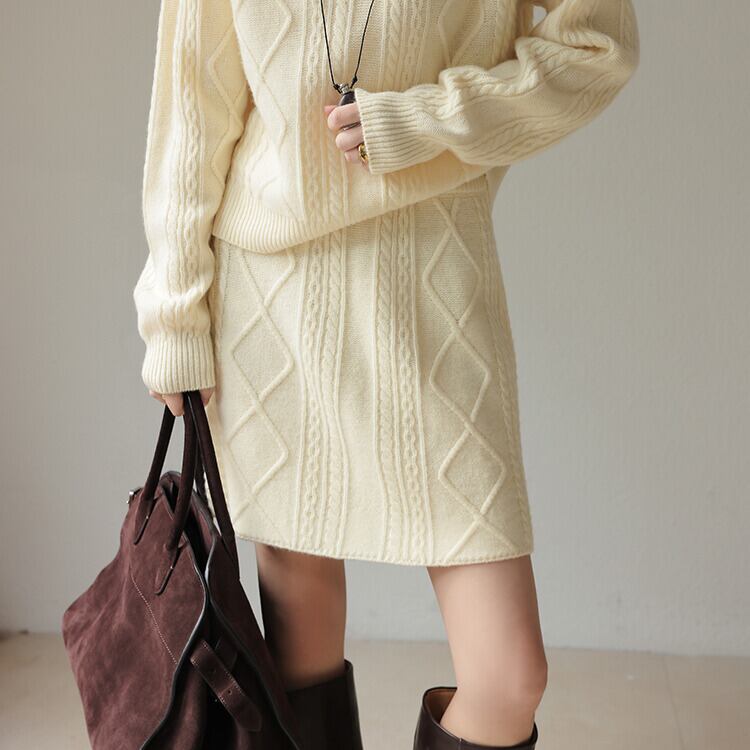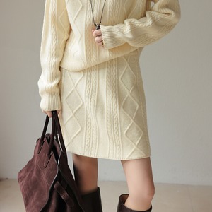 秋冬のコーディネートに暖かみをプラスする、ケーブル編みのニットスカート。
