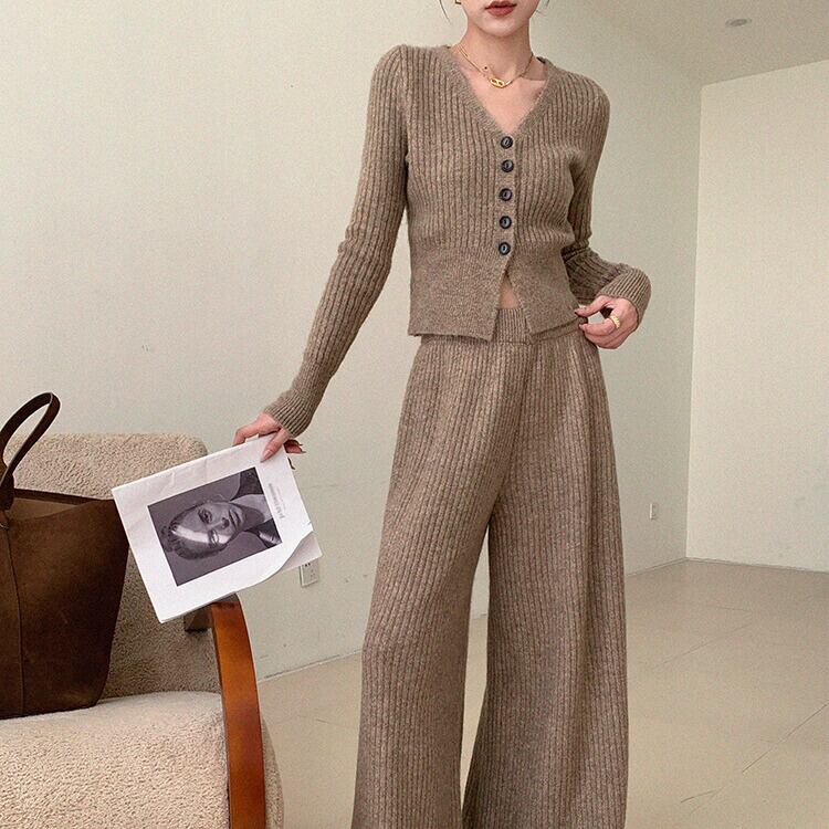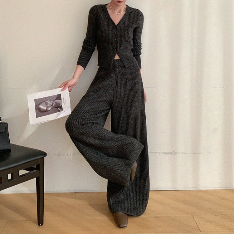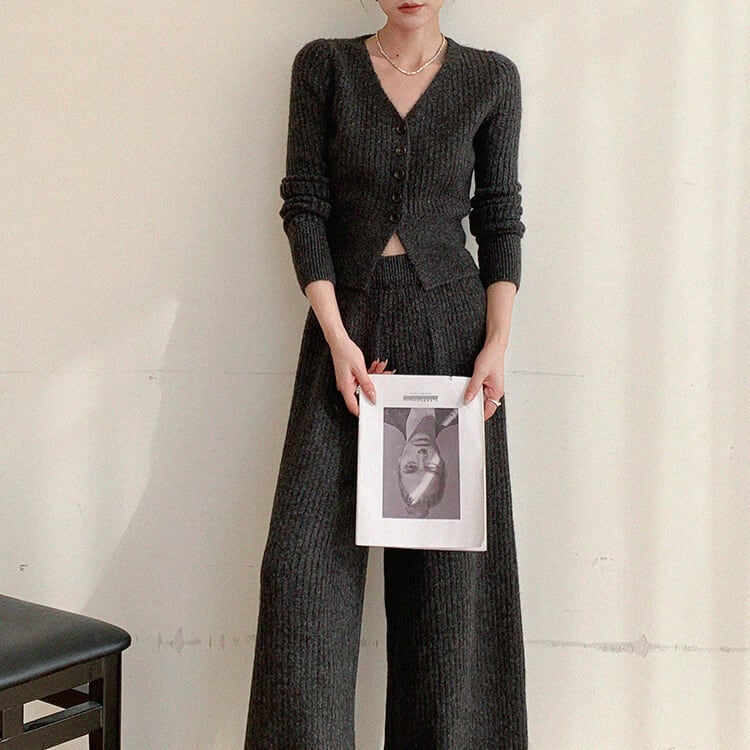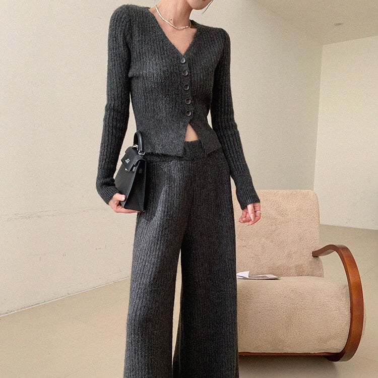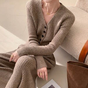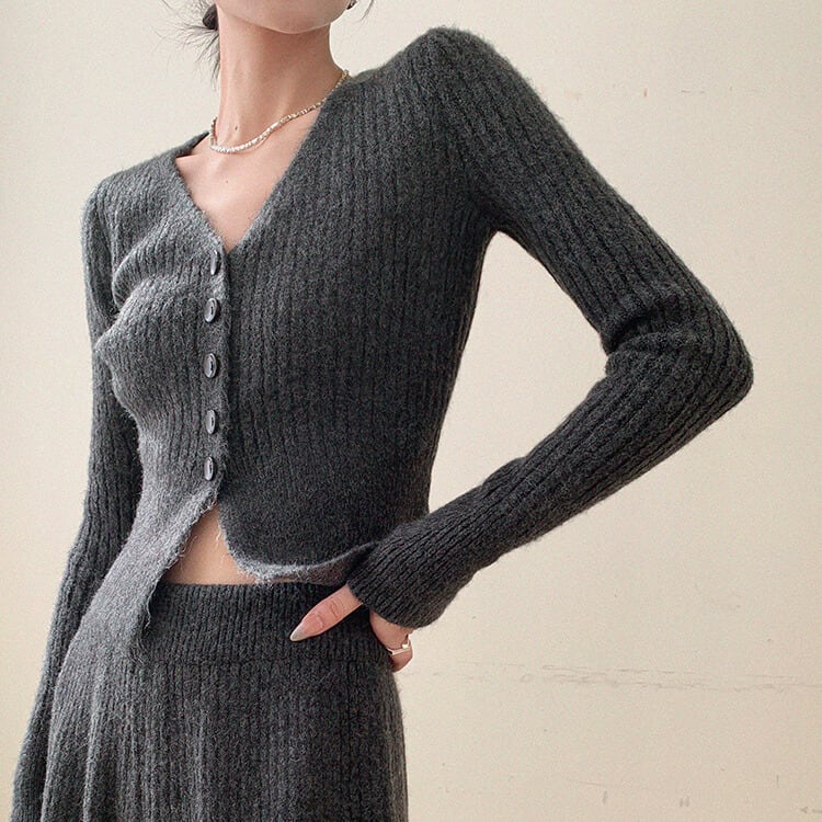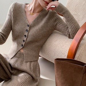 深めのVネックが、デコルテを美しく見せてくれるニットカーディガン。