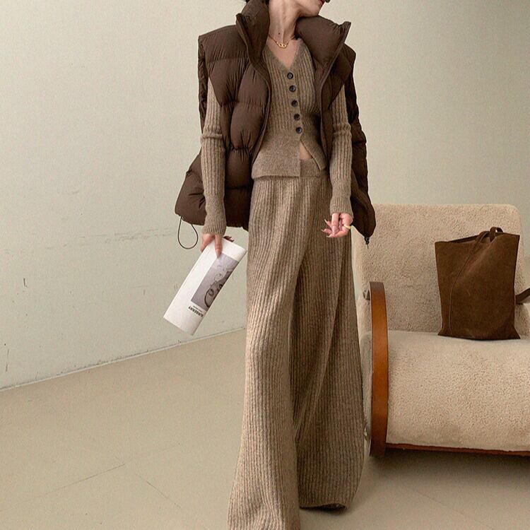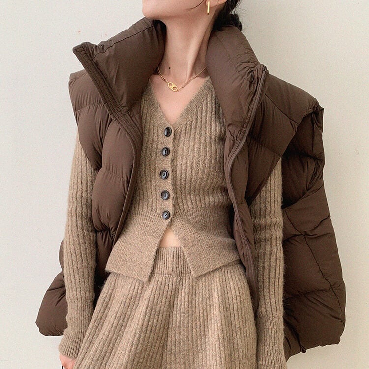 リブの縦ラインが、すっきりとしたシルエットを演出。