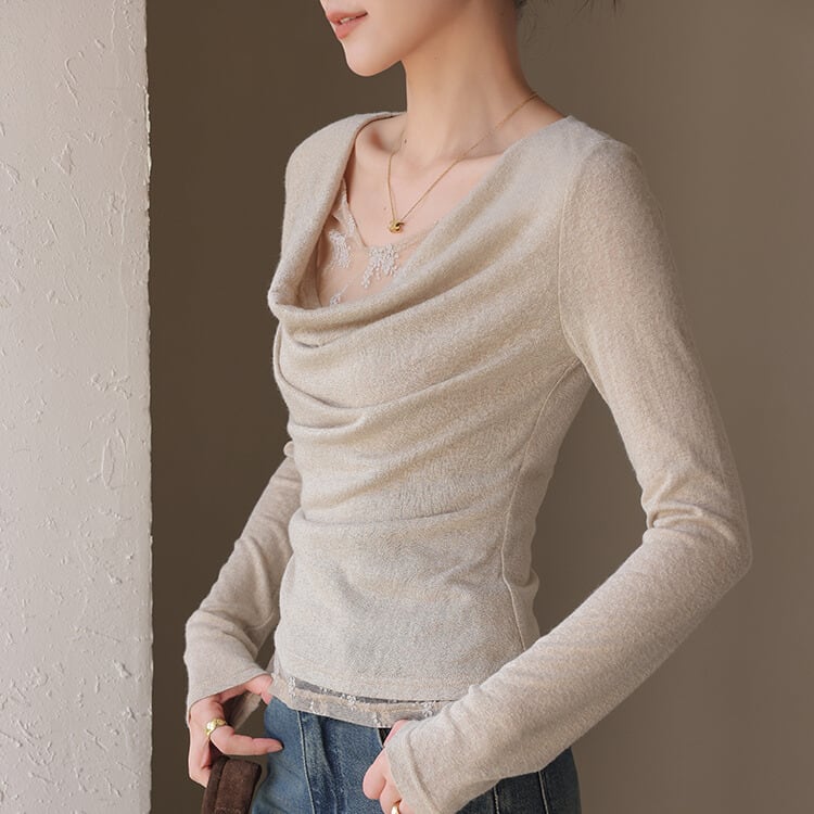 繊細なレースがさりげないアクセントになるカットソー。